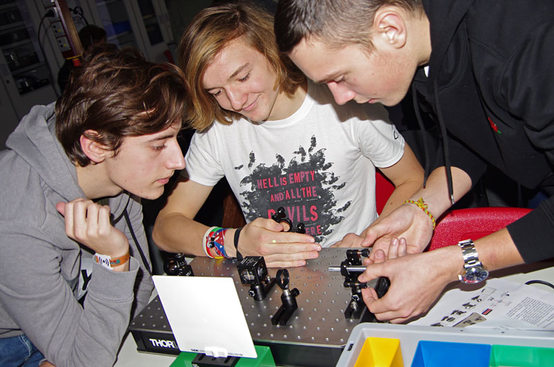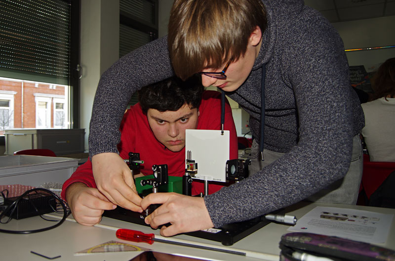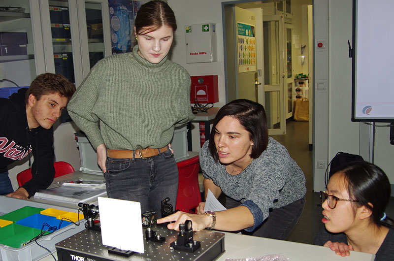 Für uns war aber vor allem die Frage von Interesse, wie sich solch extrem kleine Längenänderungen überhaupt messen lassen. Hierfür wurde uns zunächst durch Professorin Stefanie Kroker und ihrem Doktoranten Florian Bruns das notwendige Grundwissen im Themenbereich der Wellen und Interferenzphänomene sehr anschaulich vermittelt.