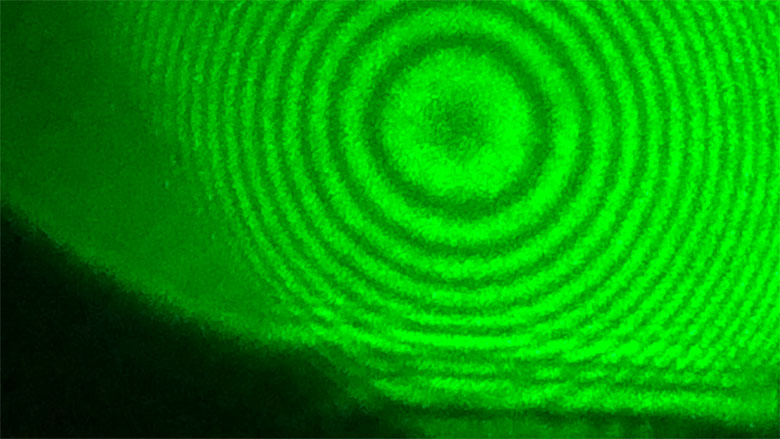 Nach viel gewissenhafter Feinjustierung gelang es allen Gruppen, das erwünschte Phänomen zu beobachten. Wir waren so in der Lage, eine Messung zur Bestimmung der Wellenlänge des verwendeten Laserlichtes durchzuführen.