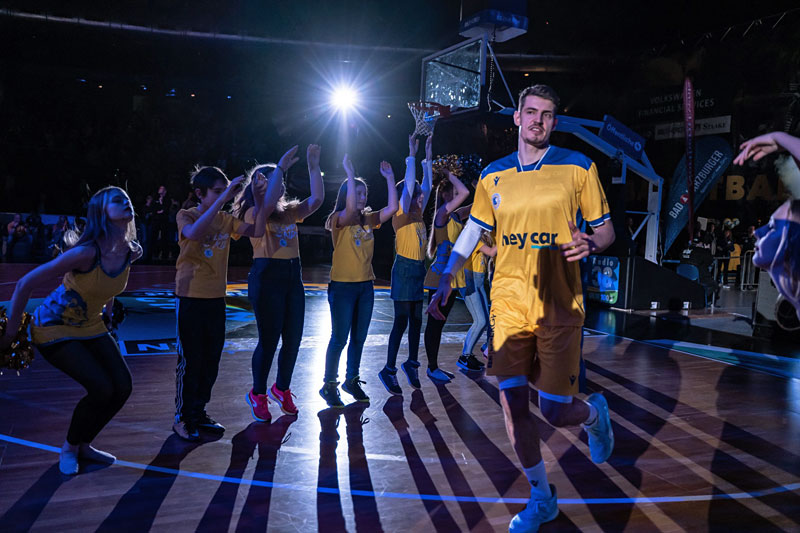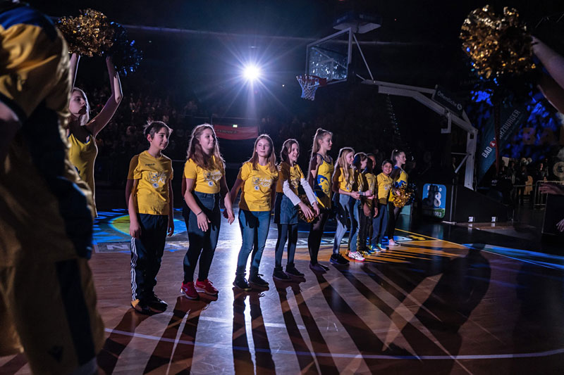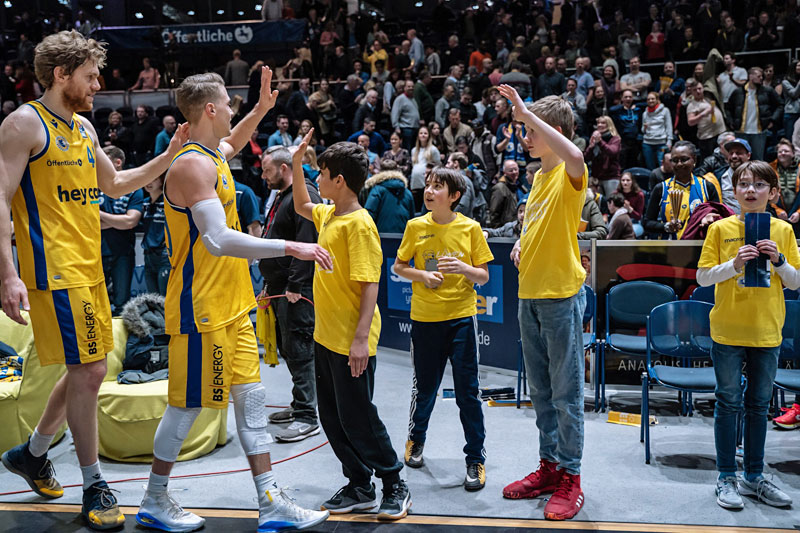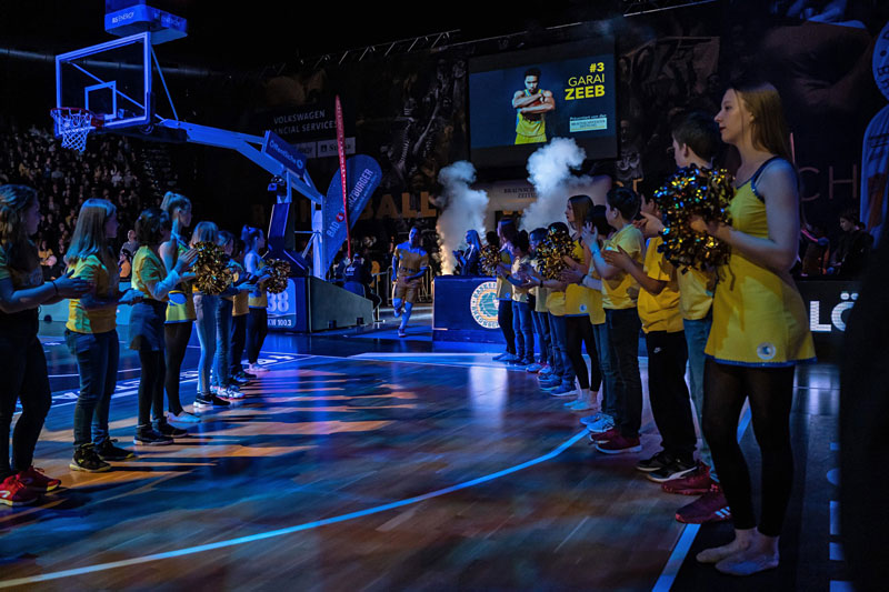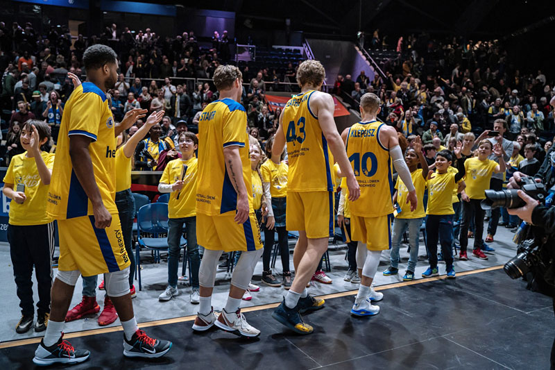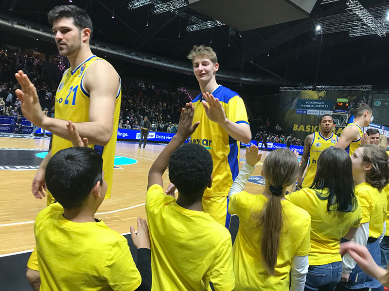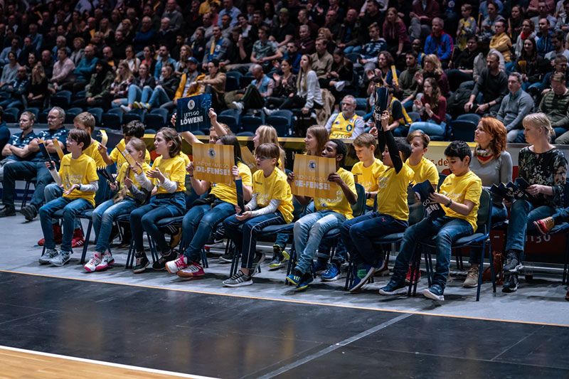 Auch in diesem Halbjahr stellten die Löwen Braunschweig Karten für die Basketball-AG zur Verfügung. Dieses Mal waren es sogar ganz besondere Karten: vor dem Spiel gegen Würzburg durften die Schüler als „Spalierkids“ die einlaufenden Spieler auf dem Feld mit einer Welle begrüßen und anschließend direkt am Spielfeldrand das Match hautnah miterleben. Was dann folgte, war an Dramatik kaum zu überbieten. Noch in der ersten Halbzeit sah es bei einem Rückstand von zeitweilig 13 Punkten nach einem klaren Sieg der Würzburger aus. Doch nach der Pause drehten die Löwen so richtig auf. Lautstark unterstützt von den 16 WG-Basketballern und etwa 3000 Zuschauern konnten sie das Spiel im letzten Viertel noch drehen und gewannen am Ende sogar dreistellig mit 100:87.