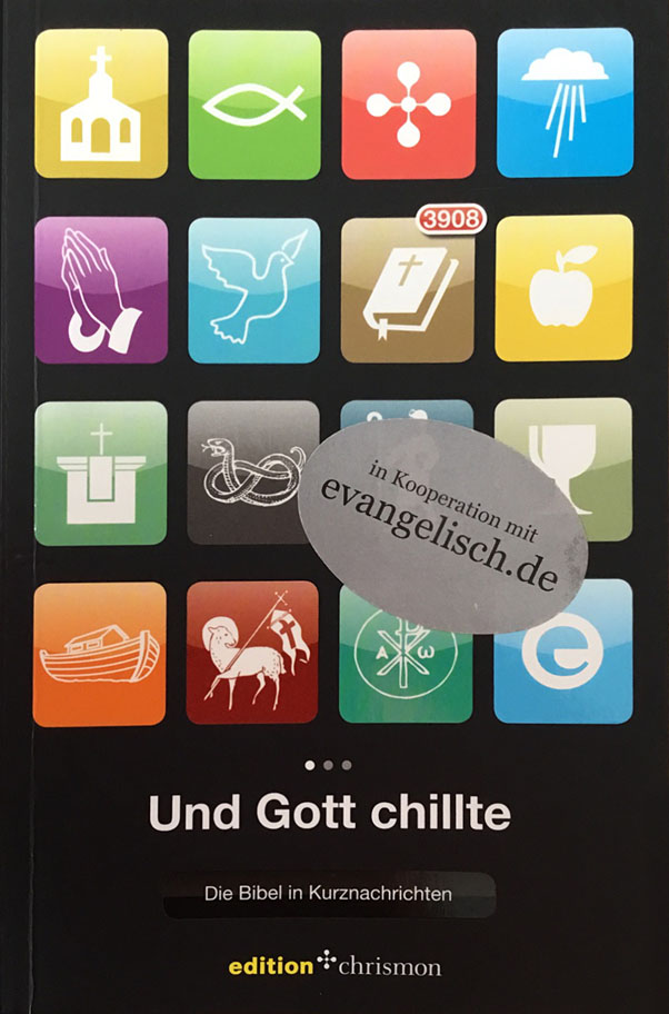 In dem Buch „Und Gott chillte“ sind die biblischen Texte als Kurznachrichten zu finden. Über 3000 Menschen haben daran mitgewirkt, die Bibel in 3908 Twitter-Nachrichten zusammenzufassen.