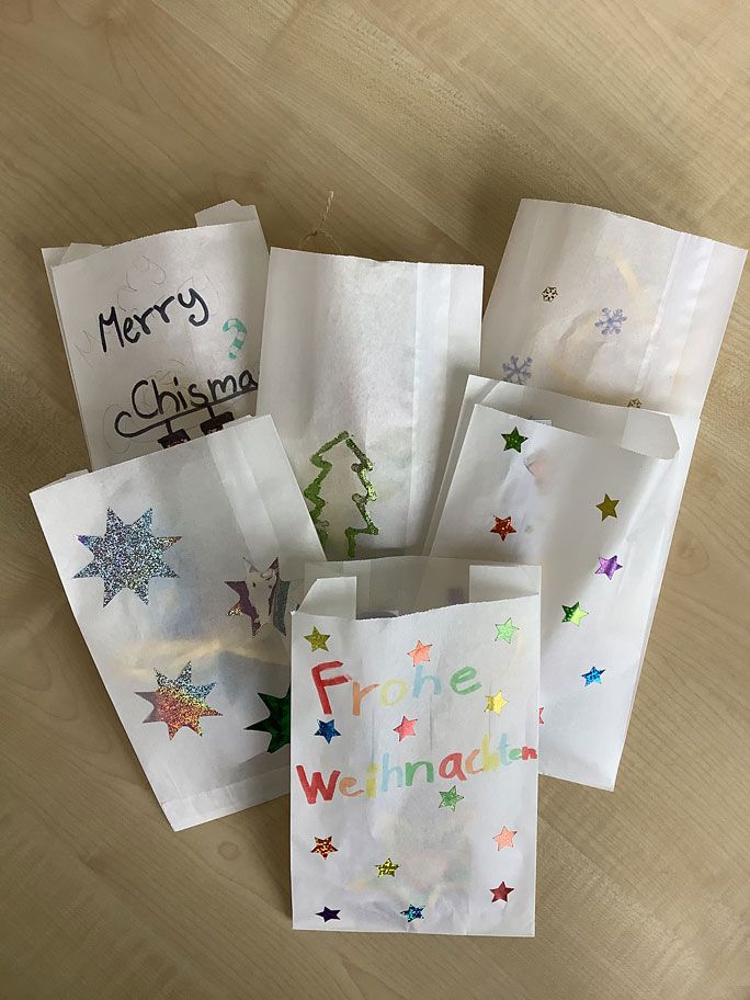 Die Religionsgruppen der Jahrgänge 5-8 verzierten mit großem Eifer über 300 kleine Holzsterne. Diese werden zusammen mit kleinen, selbst verfassten Briefen von Frau Meiners und Frau Schultalbers zu Seniorenheimen gebracht und dort von den Mitarbeiter*innen verteilt. So bringen die Schülerinnen und Schüler durch ihre Geschenke etwas weihnachtliche Freude zu den älteren Menschen.