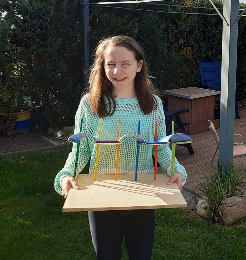 Auch Aina, Alessandra und Julia (Jg. 5) haben es trotz der schwierigen Umstände und Kontaktbeschränkungen geschafft, gemeinsam ein Modell zu konstruieren und einzureichen.