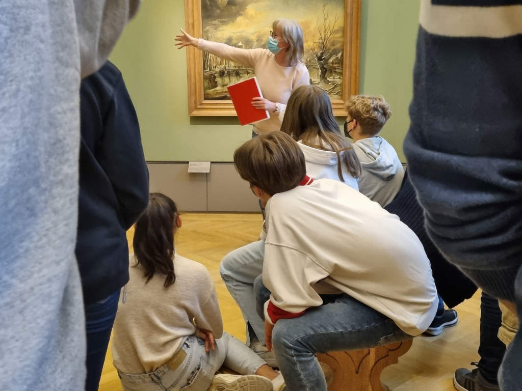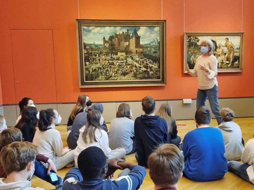 Am 30.03. besuchte die 8ms2 als Abschluss der Unterrichtseinheit „Raumdarstellung“ das Herzog Anton Ulrich-Museum. Zwischen dem HAUM, wie es auch gern kurz genannt wird, und dem WG besteht seit Jahren eine Kooperation. In einer einstündigen Führung lauschten die Schülerinnen und Schüler diesmal gespannt den Erzählungen der Museumspädagogin Frau Peters. Die Vielfalt der künstlerischen Möglichkeiten, Raumtiefe in Bildern zu erzeugen, ließ sich in den ausgesuchten Kunstwerken sehr gut wahrnehmen – das gemeinsame Entdecken machte sichtlich Spaß. Dabei war es ein besonderes Erlebnis zu erkennen, wie sich die räumliche Darstellung und die Bedeutung der Landschaft im Laufe der Jahrhunderte verändert hat. Nach einer Stunde der gezielten Auseinandersetzung mit Perspektive war auch noch Zeit, auf eigene Faust durch die Ausstellungsräume zu gehen.