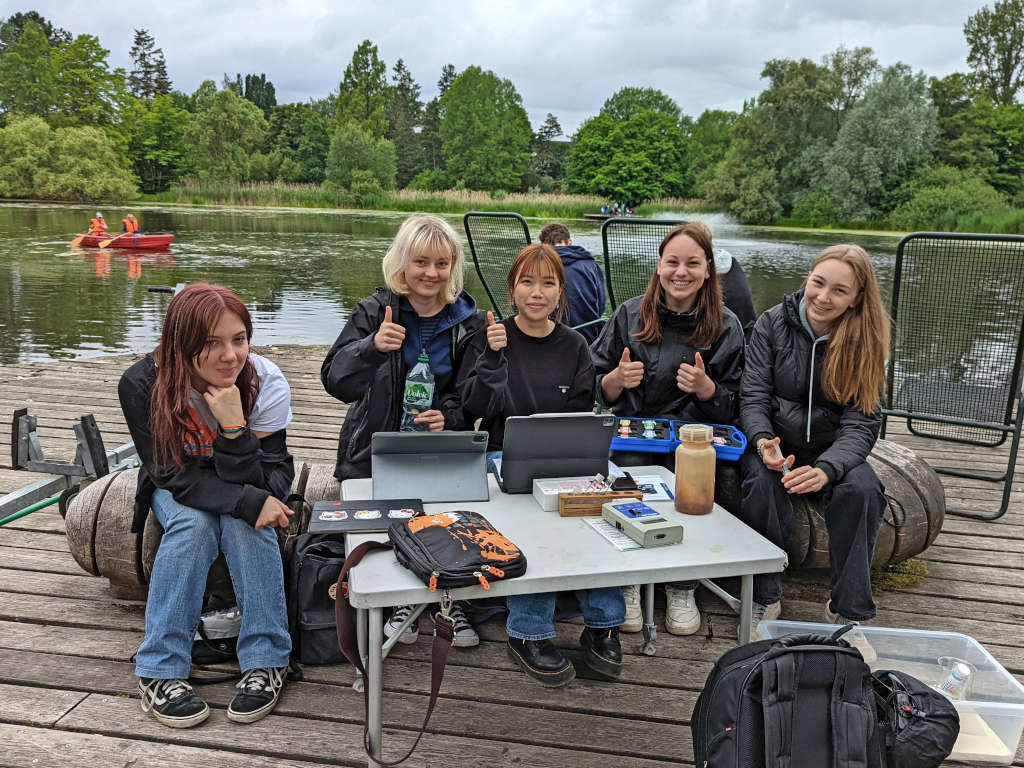 Da wir uns im Kurs schwerpunktmäßig mit Gewässeranalytik befasst hatten, fuhren wir die ersten beiden Tage zum Dowesee, wo wir auch gute Unterstützung von den KollegInnen des RUZ erhalten haben. Wir wollten herausfinden, wie es mit der Gewässergüte des Dowesees bestellt ist, nachdem er im letzten Jahr viele negative Schlagzeilen in der Lokalzeitung erfahren hatte.
