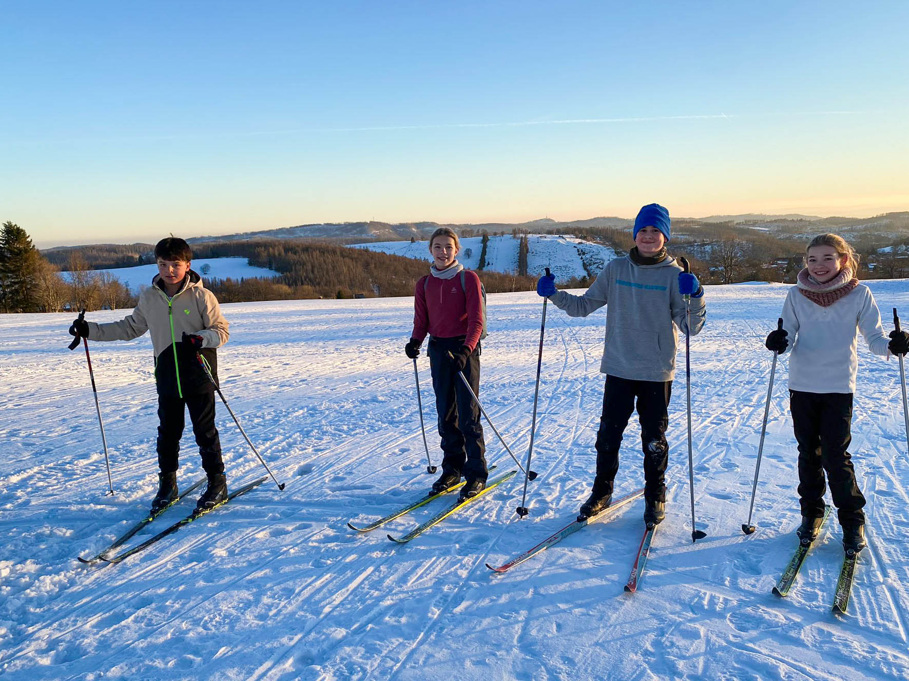 Nach ungefähr einer Stunde dauernden Busfahrt trafen wir dann im Naturfreundehaus in Sankt Andreasberg ein, welche in einer wundervoll schneebedeckten Landschaft lag. Es waren also perfekte Langlaufbedingungen, welche wir auch sofort nutzen. Nach einem kurzen Einrichten der Zimmer, dem Verteilen der Langlaufski und -schuhe und dem Mittagessen fuhren wir dann das erste Mal Langlauf. Anfangs fiel fast jeder hin, doch fast jeder verbesserte sich im Laufe der Tage erheblich.