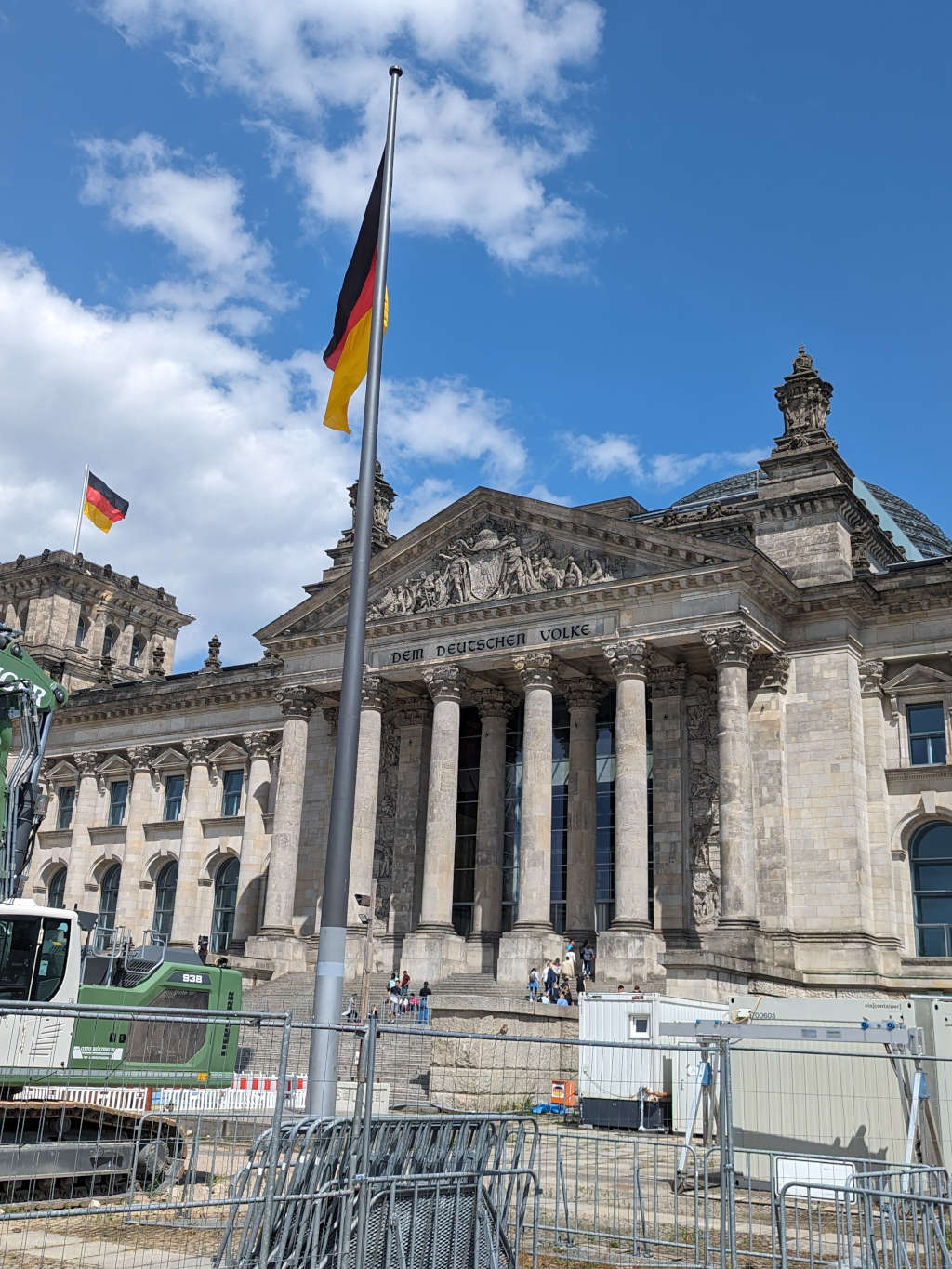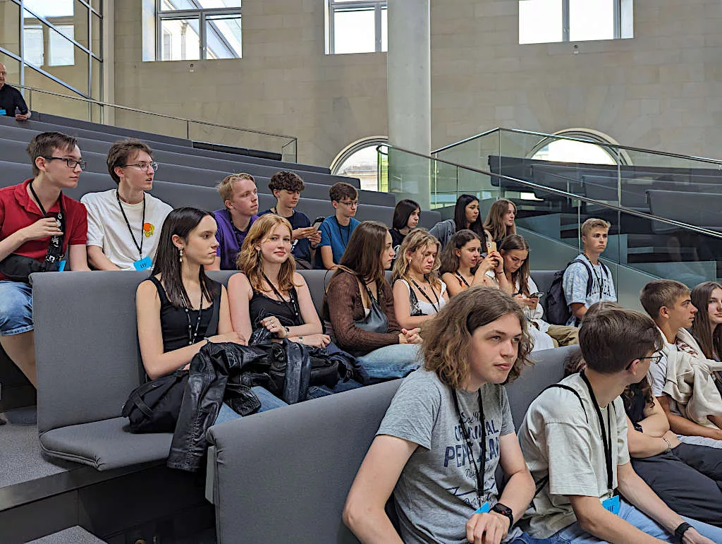 Am Sonntag fuhren wir morgens los und (nach einem ganz kurzen Abstecher ins Hotel) machten wir uns gleich auf den Weg zum Bundestag, wo wir eine sehr gute und eindrucksvolle Führung erhalten haben. Wir schauten uns u. a. den Plenarsaal, einen Ausschusssaal, zwei Fraktionssäle und die Kuppel an. Auf dem Weg konnten wir auch Olaf Scholz beim jährlichen Sommerinterview beobachten. Abends sind einige noch bei der sehr schönen Film- und Lichtshow im parlamentarischen Viertel gewesen, die ab diesem Tag für mehrere Wochen täglich läuft.