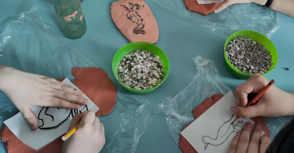 Dabei haben die Kinder nach einem Picknick im Park nicht nur lateinische Inschriften entziffert, Statuetten betrachtet, ein großes Mosaik bewundert und römische Kleidung ausprobiert, sondern auch selbst Mosaiken mit Tierfiguren im römischen Stil kreiert.
