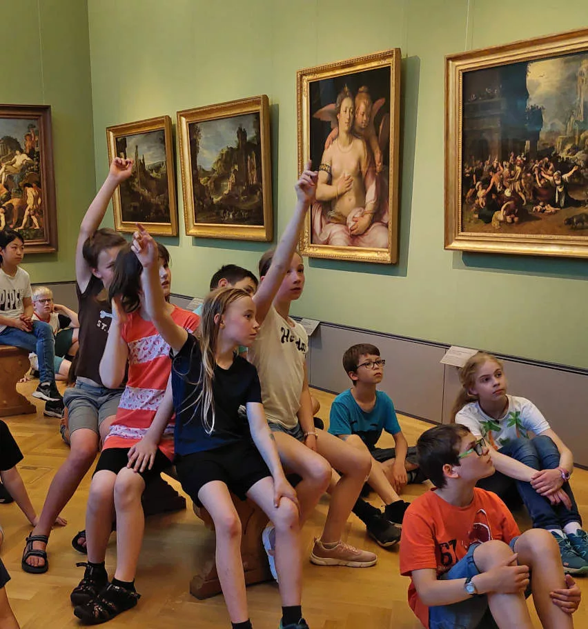 Viele Kunstwerke im Herzog-Anton-Ulrich-Museum kann man nur mit „Expertenwissen“ zur antiken Mythologie verstehen. Wie gut sie sich nach einem Jahr Latein in diesem Bereich schon auskennen, konnten die Schülerinnen und Schüler der Frühlateingruppe (jetzt Jahrgang 6) kurz vor den Sommerferien bei einer Führung durch das Museum zeigen. Zur Freude von Frau Bley, die uns spannende Gemälde und Skulpturen zur griechisch-römischen Götterwelt und Mythologie nahebrachte, beteiligte sich die Gruppe trotz starker Hitze rege und zeigte großes Interesse am Thema.