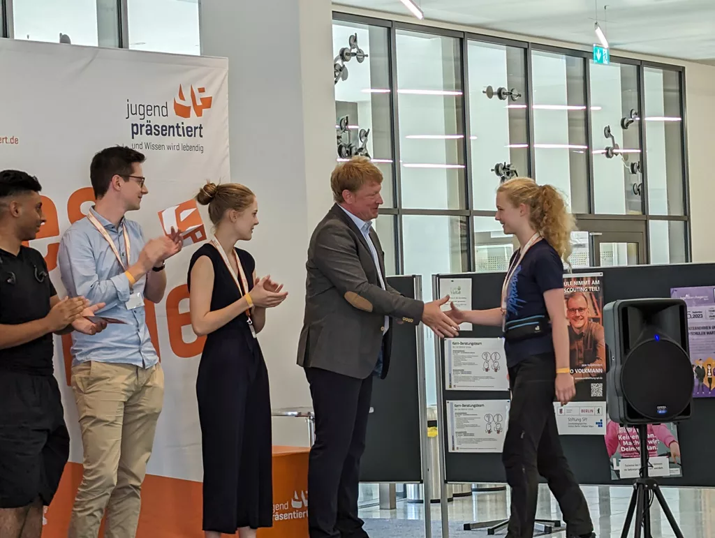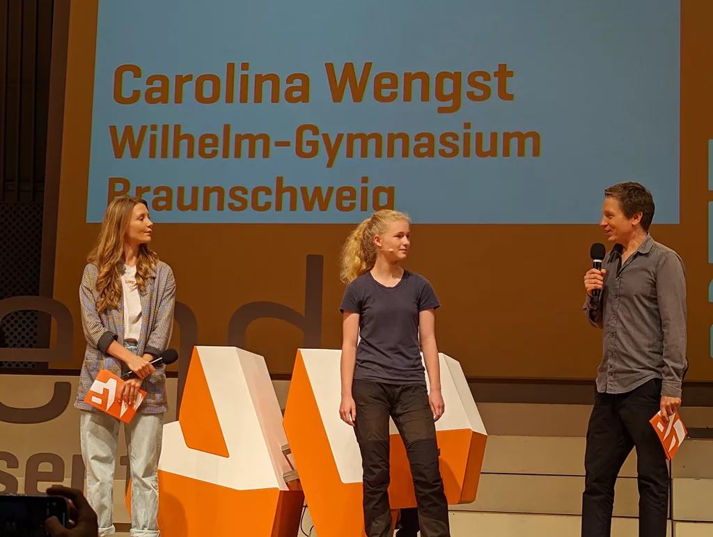 Am Sonntag, den 17.09.2023, um 13:26 Uhr wurde Carolina Wengst, Klasse 9m1, im Konzertsaal der Universität der Künste in Berlin vor einem mehrhundertköpfigen Publikum zur Jugend präsentiert-Bundessiegerin 2023 gekürt!