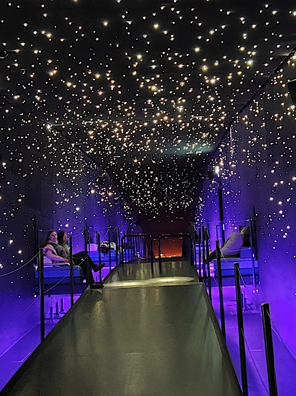 Nach einem langen Tag mit vielen eindrucksvollen Erlebnissen und Erkenntnissen übernachteten wir direkt in der Ausstellung des Klimahauses, und zwar in der Station „Alaska“. Der Freitag startet mit einem großen gemeinsamen Frühstück aller Teilnehmer und Teilnehmerinnen und dem Vorstellen der unterschiedlichen Workshops. Wir nahmen an folgenden Workshops teil: 1. „Ein Mitmach-Labor von der Jugendtheatergruppe Red Nose Juniors aus Mumbai (Indien)“, 2. „ECONARRATIVE: Wenn ich ein Wassertropfen wäre – oder eine Plastikflasche?“, 3. „Denken flüssig“ und 4. „FREI DAY: Lernen, die Welt zu verändern“.