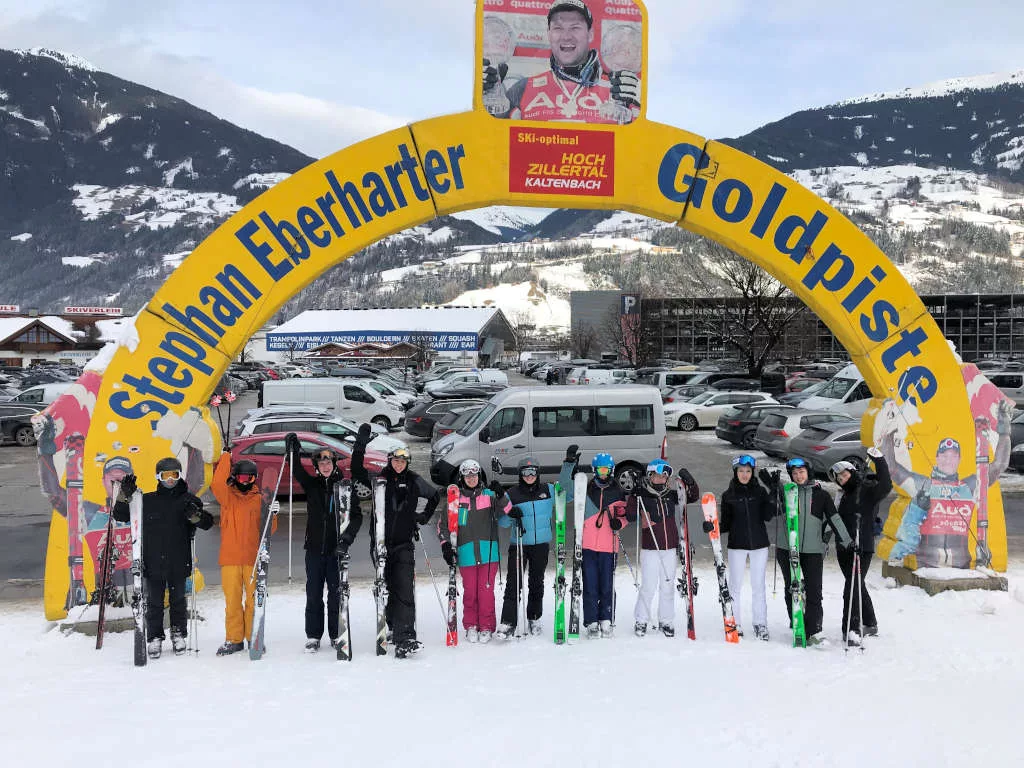 Die diesjährige Skifahrt hat allen Schüler/Innen großen Spaß gemacht, war sehr lehrreich und ist leider schon wieder vorbei! Die 24-köpfige Gruppe des 12. Jahrgangs war vom 12.01.2024 bis zum 20.01.2024 für 6 Skitage in Kaltenbach, Zillertal, Österreich. Wir wurden in zwei Gruppen unterteilt – in Anfänger und Fortgeschrittene. Zwar waren die Wetterbedingungen über die Woche hinweg schwankend, aber der erste Tag hätte besser nicht losgehen können. Strahlend blauer und sonniger Himmel und wunderbarer Schnee – einfach nur schön! Trotz teilweise schwieriger Wetterbedingungen war es beeindruckend, wie viel uns allen Herr Dr. Gericke und Herr Hofmann beigebracht haben, sodass die Anfänger dann sogar rote Pisten fahren konnten. Die Fortgeschrittenen haben die Carving- und Kurzschwung-Technik gelernt. Eines der Highlights für mich war mit Herrn Dr. Gericke in einer Kleingruppe früh morgens um 6:30 Uhr zu Fuß über 2 km steil aufzusteigen, um dann ganz alleine auf der Piste weit über dem Tal zu stehen und einen „Genuss-Schwung“ vor dem Frühstück zurück ins Quartier zu absolvieren.