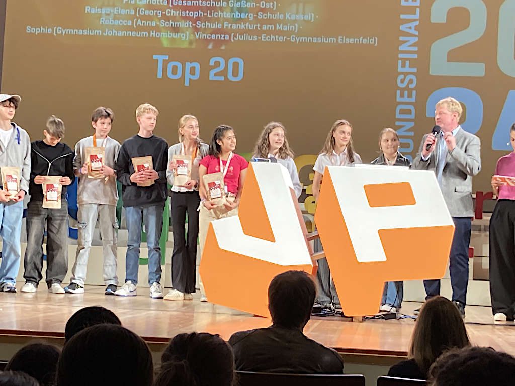 Karolin Haase und Mia Becker hatten sich über den Schulwettbewerb und das Länderfinale für die 3. Runde, das Bundesfinale, qualifiziert und Karolin Haase landete am Ende unter den besten 20. Die besten 20 werden von Jugend präsentiert noch einmal für ein Wochenende nach Berlin eingeladen und ihre Präsentation wird von einem professionellen Team gefilmt.