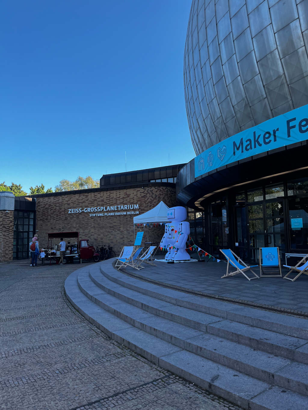 Aber das Festival war nicht nur Arbeit – es gab auch jede Menge Spaß! Von Vorträgen im Planetariumskino über kreative Workshops wie das Bedrucken von Tassen im Maker-Mobil bis hin zum Bau von kleinen Bürstenrobotern vor dem Festivalgelände – für jeden war etwas dabei. Abends gab es dann eine beeindruckende Planetariumsvorstellung.