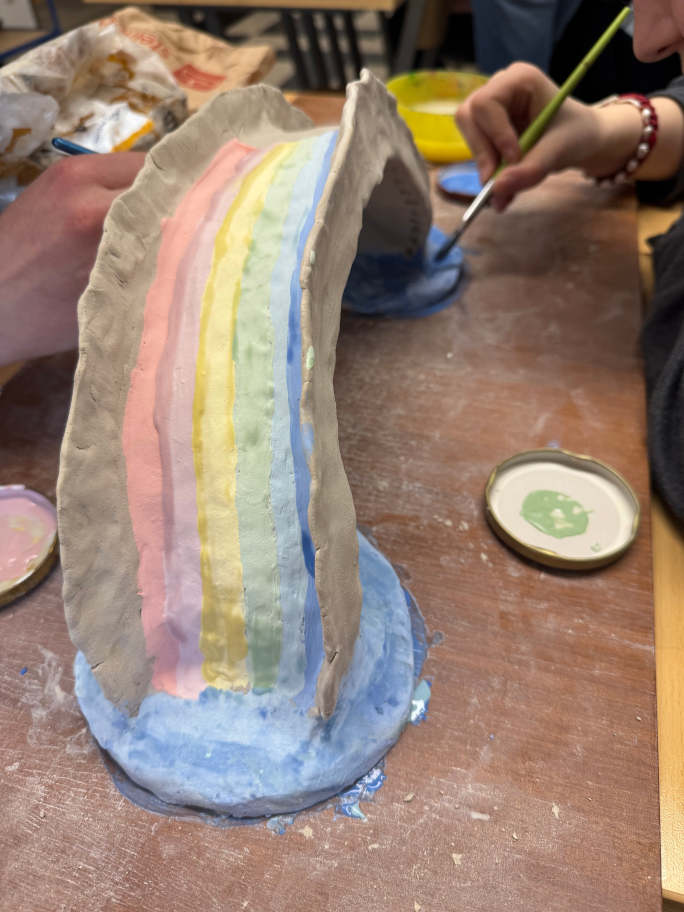 Über mehrere Wochen hinweg haben wir gemeinsam an der Umsetzung gearbeitet – begleitet von zwei Kunstdozentinnen, die uns beratend zur Seite standen. Sie haben uns nicht nur fachlich unterstützt, sondern uns auch mit allen notwendigen Materialien versorgt, die wir für unsere Arbeiten benötigten.