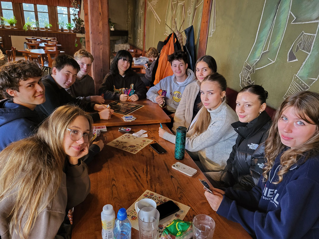 Mit Frau Sommer und Frau Pollvogt zusammen haben wir uns am Donnerstag, dem 25.9.25, um 4:30 Uhr morgens auf den weiten Weg nach Williamston gemacht und durften dort zehn Tage am Alltag in der Highschool und in unseren Gastfamilien teilnehmen. Wir alle hatten das große Glück, in wundervolle und herzliche Familien aufgenommen zu werden und haben uns sehr wohl gefühlt. Auch bei den Ausflügen mit unseren amerikanischen Austauschschülern hatten wir alle großen Spaß in dieser wilden und gut gelaunten Gruppe.