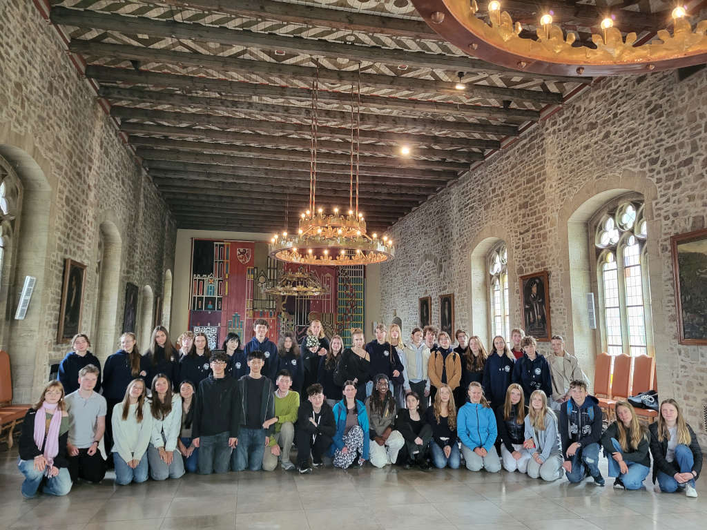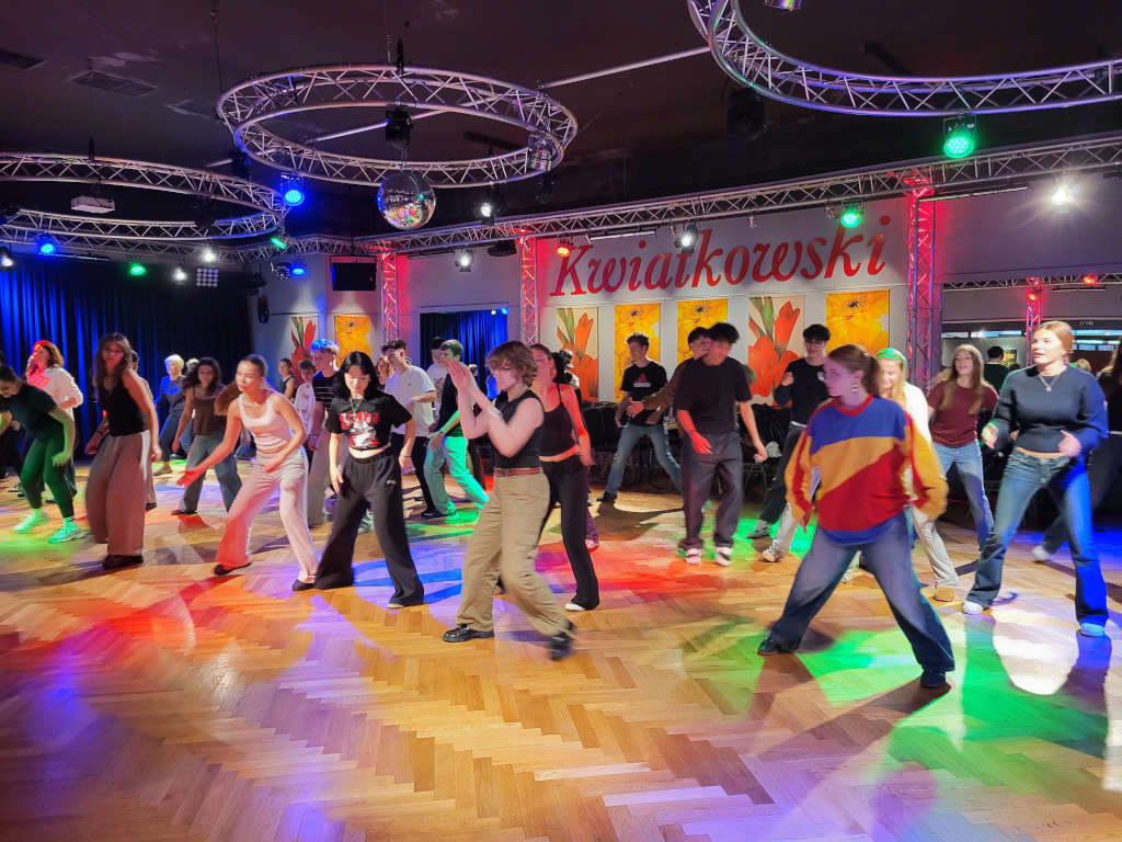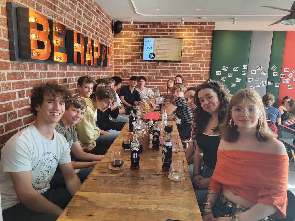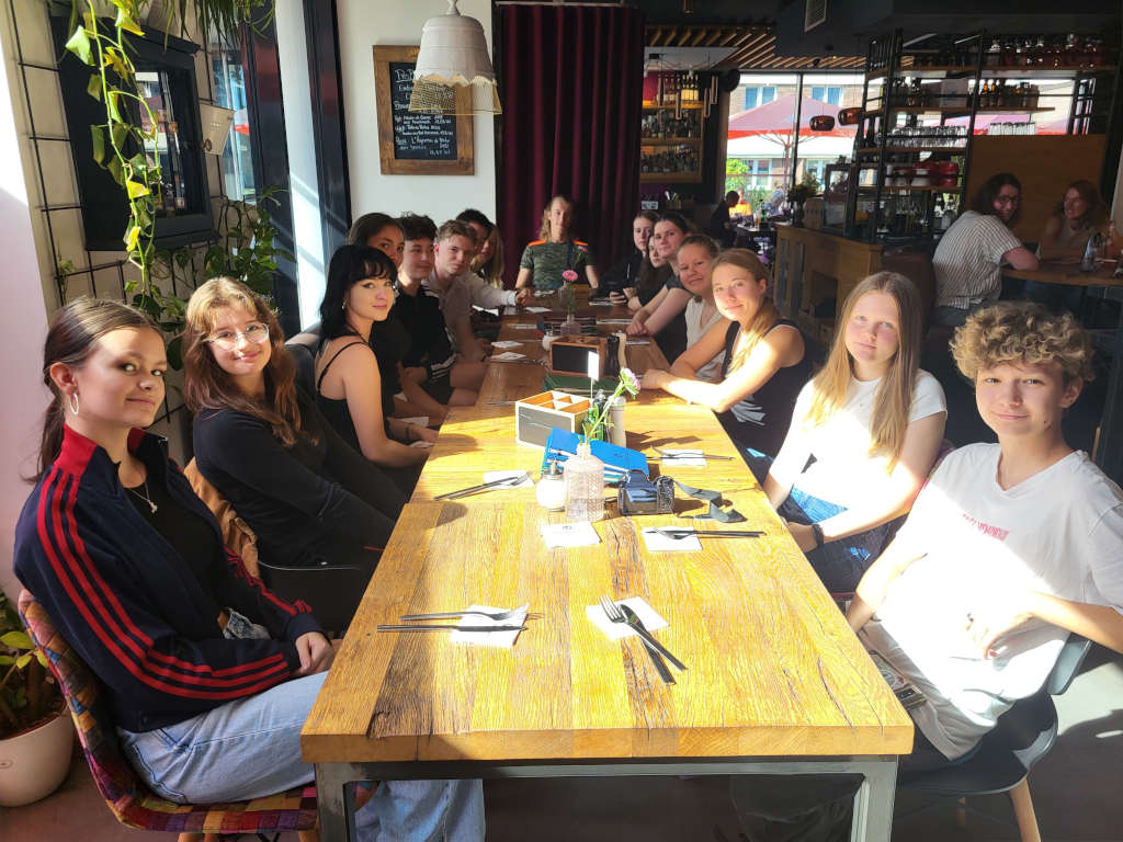 Bei der offiziellen Begrüßung in der Aula konnten unsere Gäste zunächst dem Mittelstufenchor unter Frau Holzfuß’ Leitung lauschen und erhielten dann, dank der großzügigen Unterstützung unseres Fördervereins, einen Hoodie mit WG-Logo. Hierfür bedanken wir uns ganz herzlich beim Förderverein. Nach einem kleinen Stadtrundgang wurden wir in der Dornse empfangen und bestiegen anschließend die Quadriga. In den kommenden Tagen nahmen die polnischen Schülerinnen und Schüler am regulären Unterricht teil und erlebten den Alltag in ihren Gastfamilien. Wir machten zudem einen Ausflug nach Wolfsburg, um dort sowohl die Autostadt als auch das VW-Werk zu besichtigen. Ein weiterer Ausflug führte uns nach Hannover, wo wir bei herrlichem Wetter durch die Herrenhäuser Gärten schlendern konnten. Am Wochenende stand als Highlight eine Floßfahrt auf der Oker an und auch an diesem Tag zeigte sich Braunschweig bei Sonnenschein von seiner schönsten Seite. Nachdem der Rest des Wochenendes in den Familien verbracht wurde, die sich auch viel Mühe gaben, war unser letzter Programmpunkt noch ein kleiner Workshop in der Tanzschule. Bei Paar- und Partytänzen hatten alle viel Spaß. Abends feierten wir im Burschenhof Sickte mit allen Gastfamilien und Schülerinnen und Schülern ausgelassen Abschied. Die Gemeinde Wolfenbüttel und der Sickter Bürgermeister hatten uns die Räumlichkeiten netterweise kostenlos zur Verfügung gestellt.