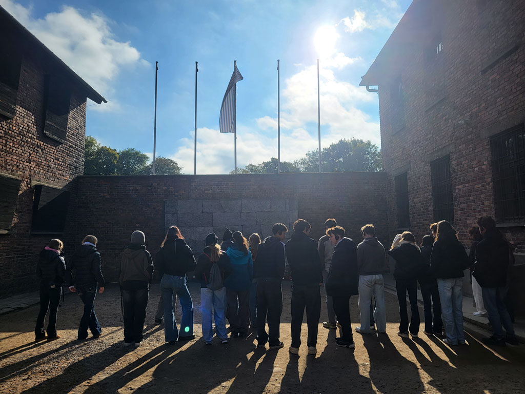 Am ersten Tag wurden wir in der Schule herzlich begrüßt und konnten in Kleingruppen die charmante Altstadt am Fuße der Beskiden kennenlernen. Am nächsten Tag hatten wir die Gelegenheit im Unterricht zu schnuppern. Anschließend machten wir einen Ausflug in ein altes Bauernhaus und lernten dort Butter zu schlagen und eine Art Fladenbrot zu backen und durften das auch verkosten. Am Samstag fuhren wir nach Auschwitz und folgten einer dreistündigen eindrucksvollen Führungen durch das ehemalige Konzentrationslager sowie Birkenau. Am Nachmittag erarbeiteten wir in Kleingruppen mehr zum Schicksal der Kinder in Auschwitz und stellten unsere Ergebnisse vor. Der Sonntag war schließlich unser Familientag und die Familien unternahmen schöne Sachen mit uns: einige fuhren nach Breslau, in das Weltkulturerbe der Salzmine Wieliczka, an die tschechische Grenze, in die Berge etc. Am Montag besichtigten wir die ehemalige Königsstadt Krakau und sahen u.a. das Königsschloss Wawel, die Tuchhallen auf dem Marktplatz oder den Drachen aus der Legende der Stadt. Am letzten Tag sollten wir eigentlich eine Wanderung in den Beskiden machen, aber da es Dauerregen gab, fuhren wir nur mit der Seilbahn auf den Berg und spielten in der Berghütte Gesellschaftsspiele. Abends feierten wir ausgelassen und tanzten auf unserer Abschiedsfeier. Nach einer Woche mussten wir uns verabschieden, doch einige planen bereits ein Wiedersehen, welches ebenfalls durch das Deutsch-Polnische Jugendwerk und das Programm #2amongmillions gefördert werden kann.