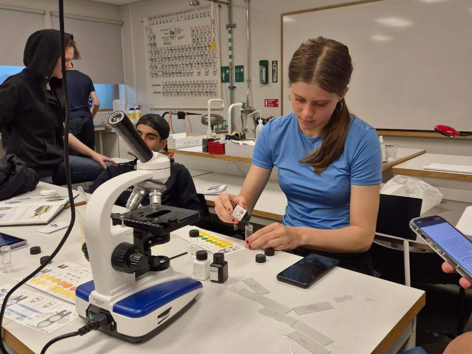 Anschließend fuhren wir mit dem Bus zurück zur Schule, wo wir in der Schulkantine zu Mittag aßen. Am Nachmittag wurden die genommenen Proben in gemischten Gruppen aus deutschen und schwedischen Schülern ausgewertet – so konnten wir nicht nur fachlich, sondern auch sprachlich voneinander lernen.