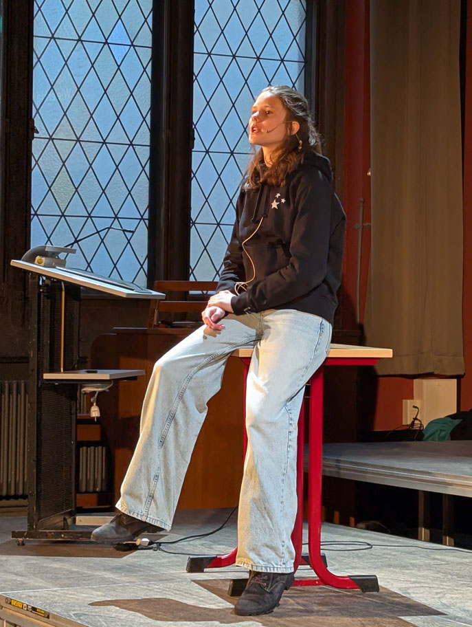 Am 30.01.2026 fand das achte Jugend präsentiert-Schulfinale am Wilhelm-Gymnasium statt. Die jeweiligen Klassenbesten des 8. Jahrgangs traten in spannenden Präsentationen gegeneinander an – und das vor ca. 140 Zuschauern in der großen Aula. Im Vorfeld hatten bereits die 90 Schüler:innen des m-Profils eine Präsentation vor der eigenen Klasse gehalten.