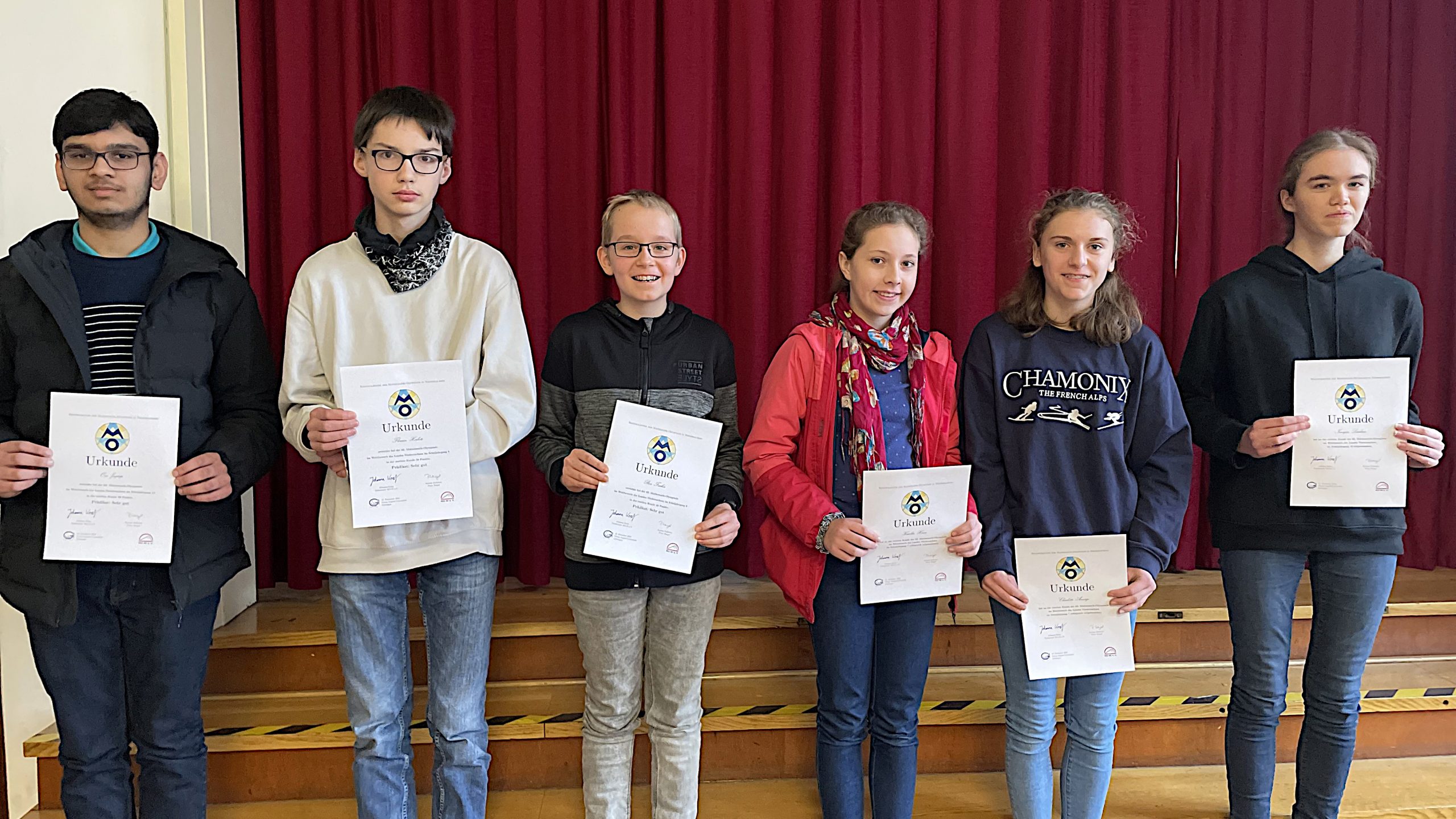In diesem Jahr fand die Landesrunde der Mathematik-Olympiade wieder im gewohnten Format in Göttingen statt. Aus 4500 Teilnehmer:innen aus ganz Niedersachsen haben sich lediglich 227 Schüler:innen für die Landesrunde qualifiziert. Wir waren mit einem enorm großen Team dabei: 11 Schüler:innen aus allen Jahrgänge haben sich der Herausforderung gestellt, sich mit den besten Mathematiker:innen des Landes zu messen. Herzlichen Glückwunsch dafür an Yaya Jiang, Tobias Klebsch, Vera Göbbel, Hagen Petz, Anton Jüttner, Florian Herbote, Ben Fischer, Om Jagtap, Gabriel Tofan, Michai Tofan und Tom Schiefer. Zum Abschluss der intensiven Zeit gab es eine feierliche Siegerehrung in der Aula der Universität Göttingen. Hier konnten sich Florian (Bronze), Yaya (Silber), Anton (Silber) und Ben (Gold) über ihre hervorragenden Platzierungen freuen. Für den Schulpokal hat es trotz der vier Medaillen leider nicht gereicht, diese Auszeichnung ging an die Bismarckschule Hannover. Schön war es, Jonas Bröring zu treffen. Jonas hat von Klasse 5-13 in jedem Jahr in Göttingen an der Landesrunde teilgenommen, nun ist er als Student der Mathematik beim korrigieren dabei! Ein großes Dankeschön geht an die Mathematikfachgruppe, ohne deren unermüdliches Engagement unsere Erfolge nicht möglich gewesen wären und an unsere Schulleitung, die die Förderung mathematisch begabter Schülerinnen und Schüler hervorragend unterstützt. Petra Weigel