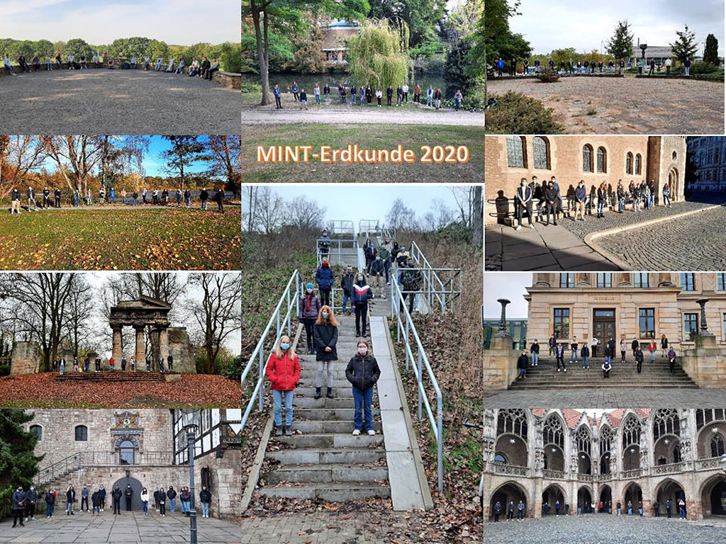 Das MINT-Erdkunde-Praktikum in diesem Schuljahr ist ein besonderes – in jeder Unterrichtseinheit wird ein geographischer Standort in Braunschweig zu Fuß aufgesucht. Vor Ort gibt es dazu einen thematischen Vortrag – alles Besprochene kann „live und in Farbe“ betrachtet, erfasst und berührt werden. Der Rogenstein vom Nußberg, der Velpker Sandstein oder der Elmkalk – all‘ das konnte in Braunschweig auf- und wiedergefunden werden – am Dom, am Schloss, am Rathaus und an vielen anderen Orten. Auch die Oker, die Teiche in Riddagshausen, Schloss Richmont, Viewegs Garten und der Hauptbahnhof, das Ringgleis, der Portikus im Bürgerpark und die Maschinenhalle des Flusswasserwerkes standen auf dem Exkursionsplan.