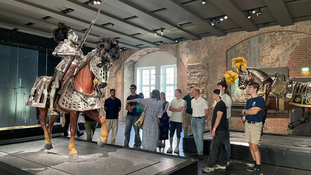 Der Mittwoch begann mit einer Besichtigung des Residenzschlosses und seinen Kunstkammern, die wir nach einer Führung auf eigene Faust erkunden konnten. Zu den Höhepunkten zählten das Historische und Neue Grüne Gewölbe mit seinen prunkvollen Schatzkammern, das Kupferstich-Kabinett und die Rüstkammer mit kunstvoll gearbeiteten Waffen und Rüstungen. Während Herr Dr. Saremba im Anschluss mit einigen fußballbegeisterten Schülern das Dynamostadion besuchte, zog es andere zur Frauenkirche, wo sie gemeinsam mit Herrn Dr. Nowak eine kurze Andacht erlebten. Dort wurde die bewegte Geschichte des Bauwerks erzählt, die von Zerstörung, jahrzehntelangem Wiederaufbau und internationaler Zusammenarbeit geprägt ist.