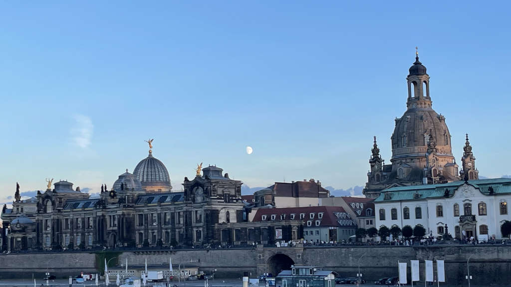 Nach einer sehr frühen Abfahrt vom Braunschweiger Hauptbahnhof begann die Kursfahrt mit einer Stadtführung, bei der die Schüler erstmals die typischen Attraktionen Dresdens entdeckten und gleichzeitig spannende Einblicke in deren Geschichte erhielten. Zu den Highlights zählten die imposante Frauenkirche am Neumarkt, der detailreiche Fürstenzug und der berühmte Canaletto-Blick auf die Altstadt. Am späten Nachmittag führte der Weg zum Elbufer, wo die Gruppe den Sonnenuntergang in einem gemütlichen Biergarten bei Abendessen genießen konnte. Da der restliche Abend zur freien Verfügung stand, nutzten viele die Gelegenheit, in kleineren Gruppen das Nachtleben der Stadt auf eigene Faust zu erkunden.