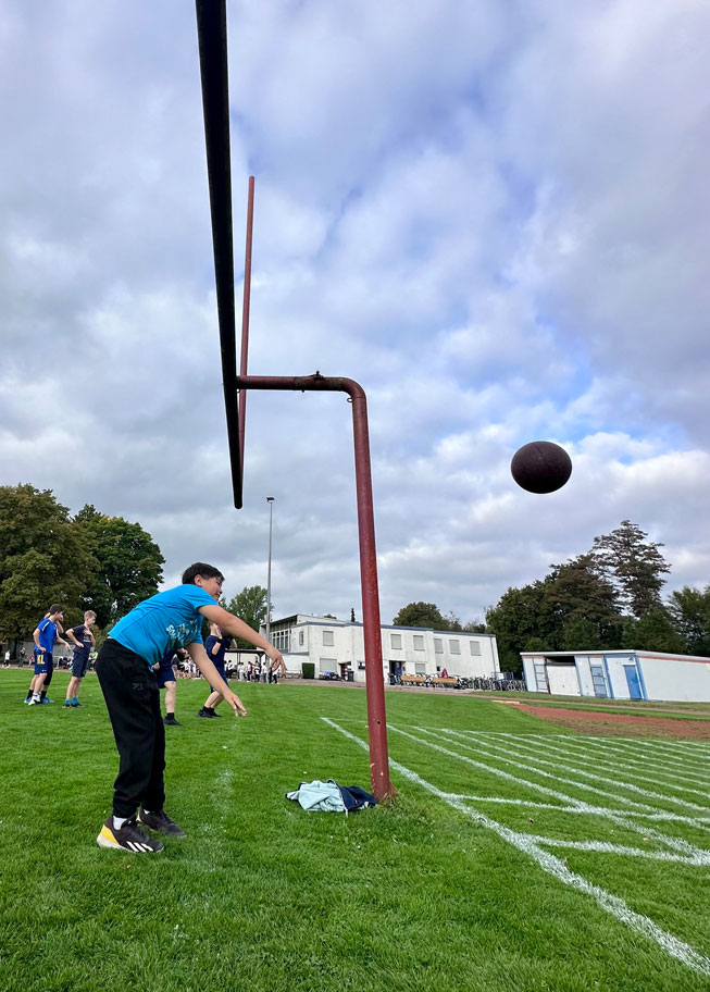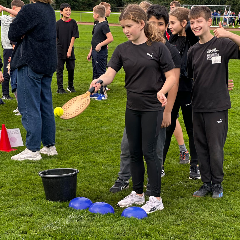 Unter strahlendem Sonnenschein fand das Sportfest des Wilhelm-Gymnasiums für die 5. und 6. Klassen auf der Bezirkssportanlage Rote Wiese statt. Die Schüler wetteiferten in verschiedenen Disziplinen wie Staffellauf, Zielschlagen, Zonenstoßen, Weitsprung und Werfen miteinander.