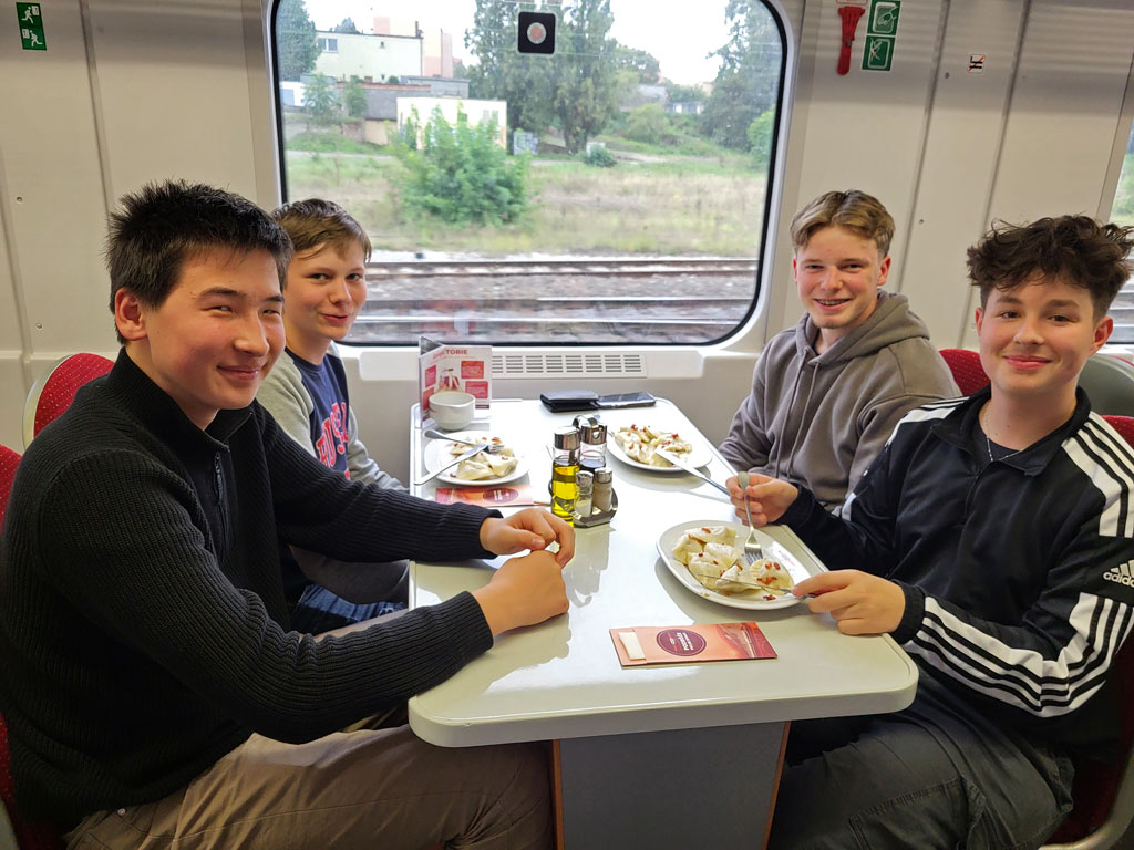 Wir haben uns morgens um 07:30 Uhr am Hauptbahnhof in Braunschweig getroffen, um unsere Reise nach Schweden zu starten. Gegen 8 sind wir mit dem Zug nach Hannover gefahren. Während der Fahrt haben wir gefrühstückt, Karten gespielt und gequatscht.