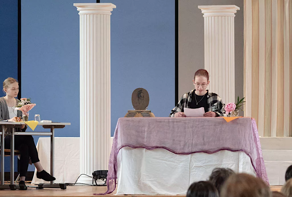 Am 4. Juni wurde der Klasse 8m2 im Rahmen einer großen Betriebsversammlung auf dem Gelände des VW-Werks der Sally-Perel-Preis verliehen. Außer unserer Klasse gab es noch drei weitere Preisträger. Wir waren mit einer Delegation der Klasse dort und nahmen aus den Händen des Braunschweiger Oberbürgermeisters Dr. Kornblum eine Urkunde und eine Trophäe entgegen.