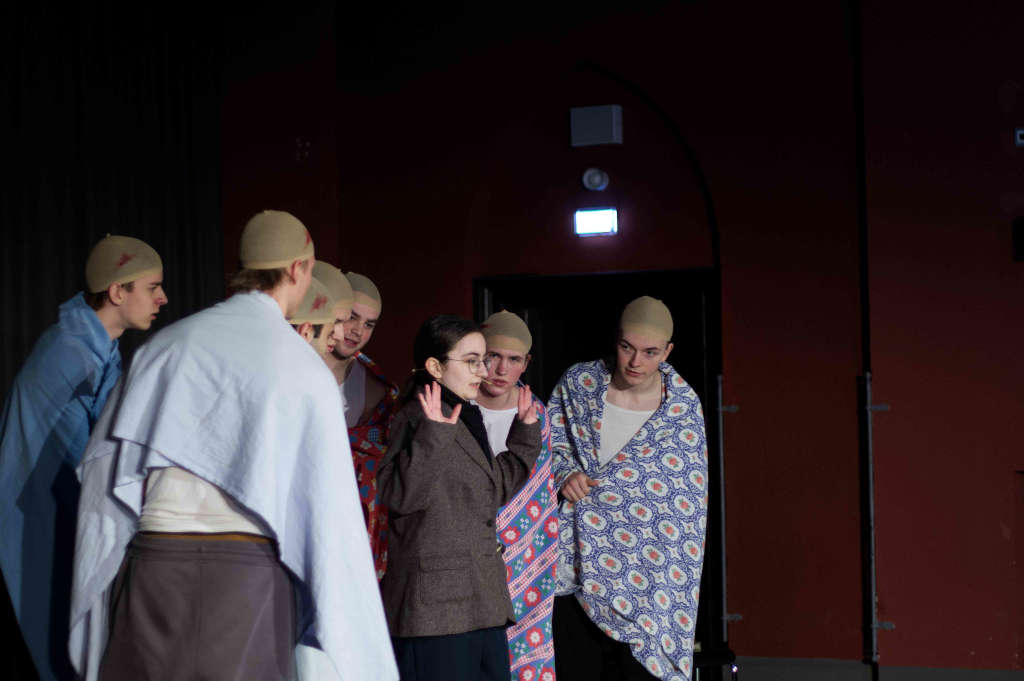 Auf dem Weg zum Auftritt haben wir vieles erlebt: Höhen, Tiefen und auch Momente, in denen wir nicht wussten, ob alles wirklich klappen wird. Inszeniert wurde das Stück als gekürzte und modern interpretierte Variante. Durch kreative Kostüme, humorvolle Einlagen und moderne Elemente wurde das klassische Stück auf eine neue und lebendige Weise dargestellt. Besonders die Ambivalenz des Richter Adam konnte dadurch noch deutlicher gezeigt werden: einerseits als Autoritätsperson, andererseits als widersprüchliche und komische Figur. So wurde die Satire des Lustspiels für das Publikum besonders deutlich und sorgte sogar für einige Lacher. Mit viel Geduld und Entschlossenheit konnten wir das Schauspiel vollenden und einen unvergesslichen Moment auf die Bühne bringen. In diesen anderthalb Jahren sind wir als Kurs enger zusammengewachsen und haben den Spaß am Schauspiel für uns entdeckt.