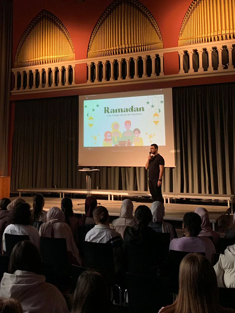 Ein weiterer Aspekt war die Unterstützung der KI für den Unterricht: Rasche Veranschaulichungen, rasche Textvariationen und sogar Unterhaltungen mit antiken Philosophen oder gar Jesus seien möglich. Dies alles mache die KI schon heute „intelligent“, werde in Zukunft aber noch durch größere verarbeitete Datenmengen noch „intelligenter“ machen. Dies dürfe uns aber nicht träge machen, denn das Entscheidende sei, dass dann mit menschlicher Intelligenz kritisch geprüft und weiter am Inhalt gearbeitet werden müsse. Hierfür bedarf es zwingend der humanistischen Bildung, also auch auf den ersten Blick nicht nützlicher Inhalte und Fächer.