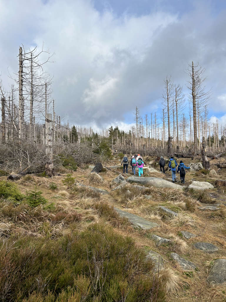 Die Klasse 7b besucht die Grube Samson, besteigt bei schönstem Wetter den Achtermann und findet Schnee, Brockengranit und einen Fuchs.