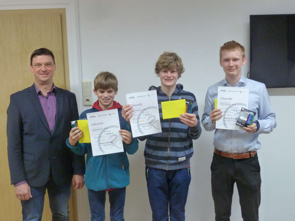 - unsere ehemaligen Abiturienten Louis Ostrowski, Jan-Marten Kleine-Besten und Catherine Seidel (Abitur 2024),