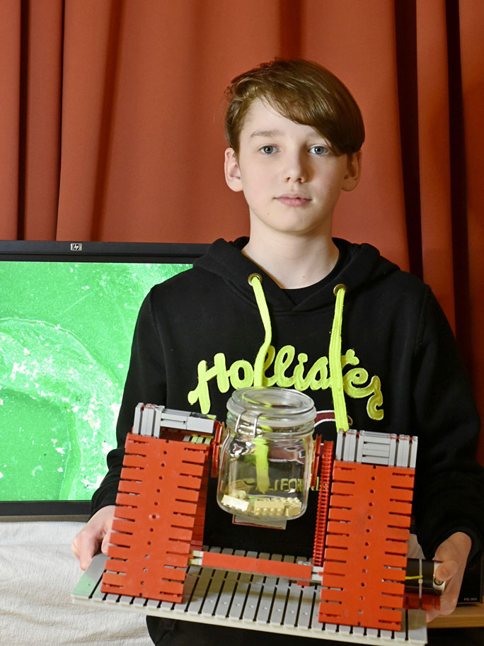 Felix aus der 8s1 hat sich in seiner Arbeit unter der Betreuung von Frau Idel mit Mikroplastik im Kinderzimmer auseinandergesetzt. Jedes Jahr werden große Mengen an Mikroplastik in die Umwelt freigesetzt. Dieses wird über das Trinkwasser und die Nahrung von Tieren und Pflanzen aufgenommen. Hierzu hat Felix Bruchstücke eines Legosteins unter dem Mikroskop analysiert, die nach der Belastung durch Spielen entstehen.