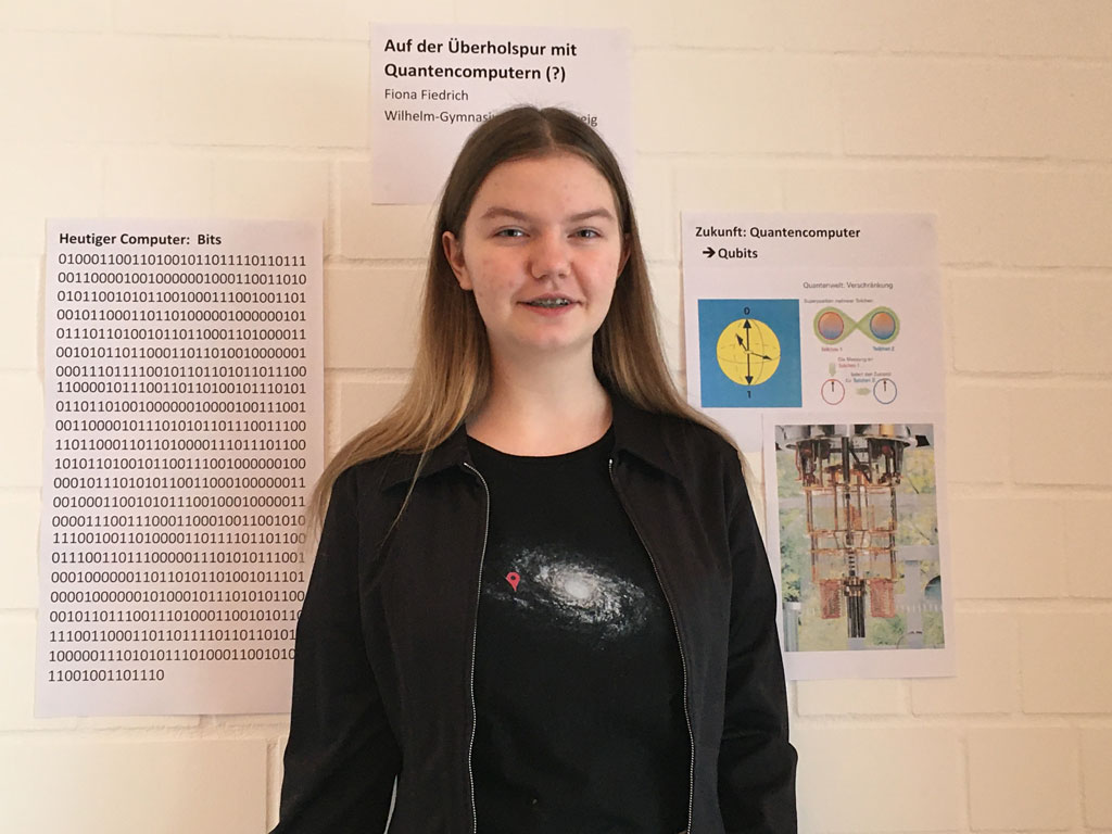 Fiona aus der 9m1 hat wiederholt erfolgreich am Wettbewerb teilgenommen. In dieser Runde setzte sie sich, betreut durch Herrn Bielenberg, zunächst damit auseinander, was hinter dem Begriff Quanten steckt. Danach untersuchte Fiona, welche Verbesserung Quantencomputer bedeuten können.