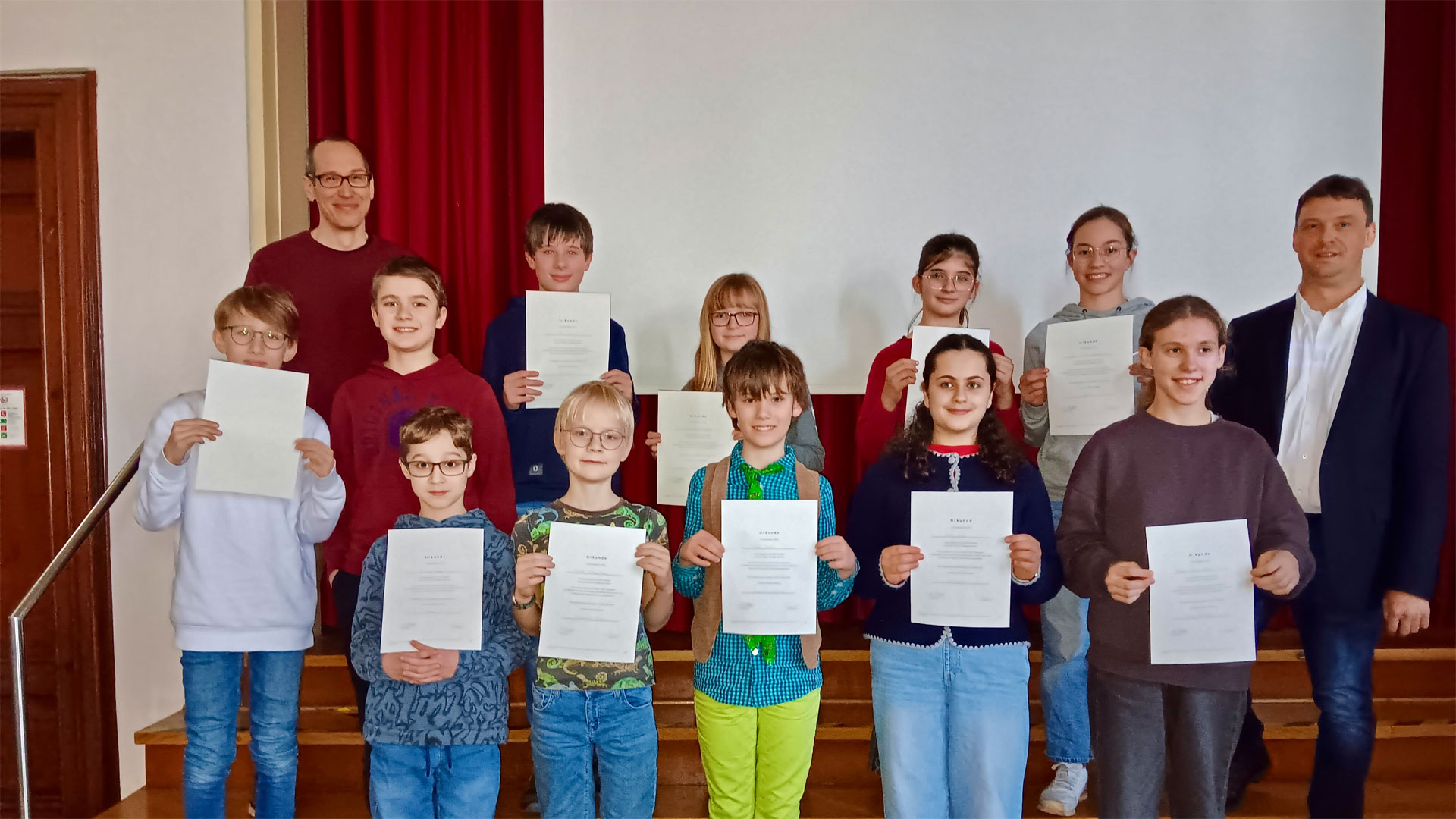 Die zweite Runde der AG Forsche Füchse hat am 19.01. in der Aula der Außenstelle ihr erlesenes Publikum begeistert: Klettern und Feldhockey, Papierherstellung und Computerpreise, Zauberei und Filmgeschichte, mathematische Körper, Blutmond und Einsteins Relativitätstheorie wurden in diesem Halbjahr thematisch erarbeitet und individuell für eine Präsentation vorbereitet. Auch durch den Schulausfall just am Präsentationstag war es eine turbulente Zeit für die Füchse, welche sich aber zu keiner Zeit aus der Ruhe bringen ließen.