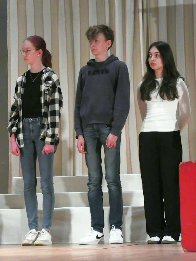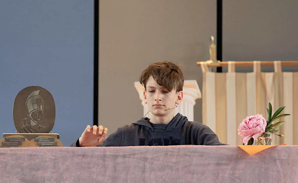 Dank der TheaterFLAT konnte am 22. Februar eine größere Gruppe von Interessierten aus den Griechischkursen, der AG „Antikes Theater“ und dem Latein-eA-Kurs 12 gemeinsam mit den Griechischlehrkräften Herrn Conrad und Frau Greve-Sawla einen beeindruckenden Theaterabend im „Aquarium“ des Staatstheaters erleben. „Laios“, der Vater des Ödipus, steht im Mittelpunkt des Stückes von Ronald Schimmelpfennig. Formal handelt es sich eher um eine lange, teils nicht lineare Erzählung, die aber von zwei Schauspielerinnen und einem Schauspieler sehr ausdrucksstark auf die Bühne gebracht wurde; die teils grausamen Seiten antiker Mythen wurden dabei nicht ausgespart.