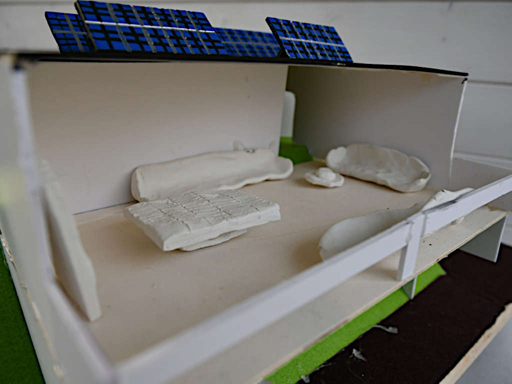 Es entstanden Visionen – teils als bauliche Erweiterung – zum roten Außenpavillon, zu den Containern, zum Schulgarten und sogar zum Dach der Sporthalle. Die beigefügten Fotos belegen eindrucksvoll die Bandbreite der Ideen – hier auf der Homepage, aber auch vom 24.01. – 22.02.2023 im Container D006 auf dem Außengelände des Schulhofs Haupthaus.