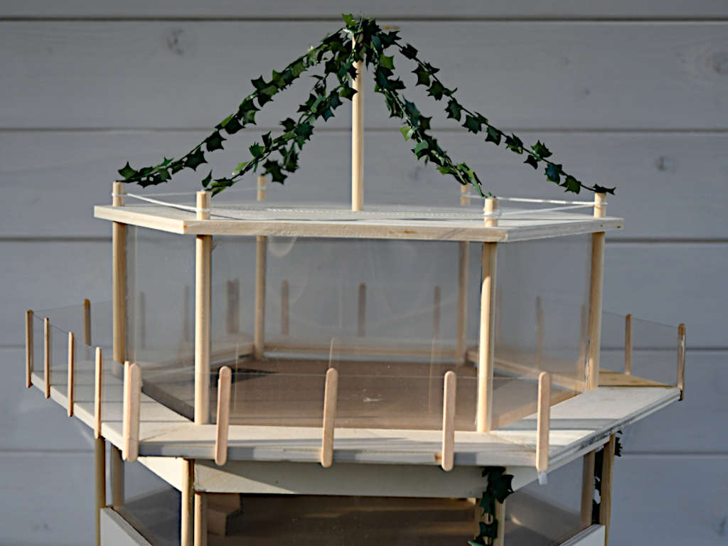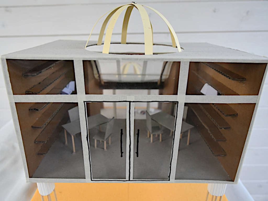 Mit geringen Mitteln – wenig Zeit und etwas Modellpappe – bauten Schüler:innen aus dem 9. Jahrgang sehr interessante Architekturmodelle.