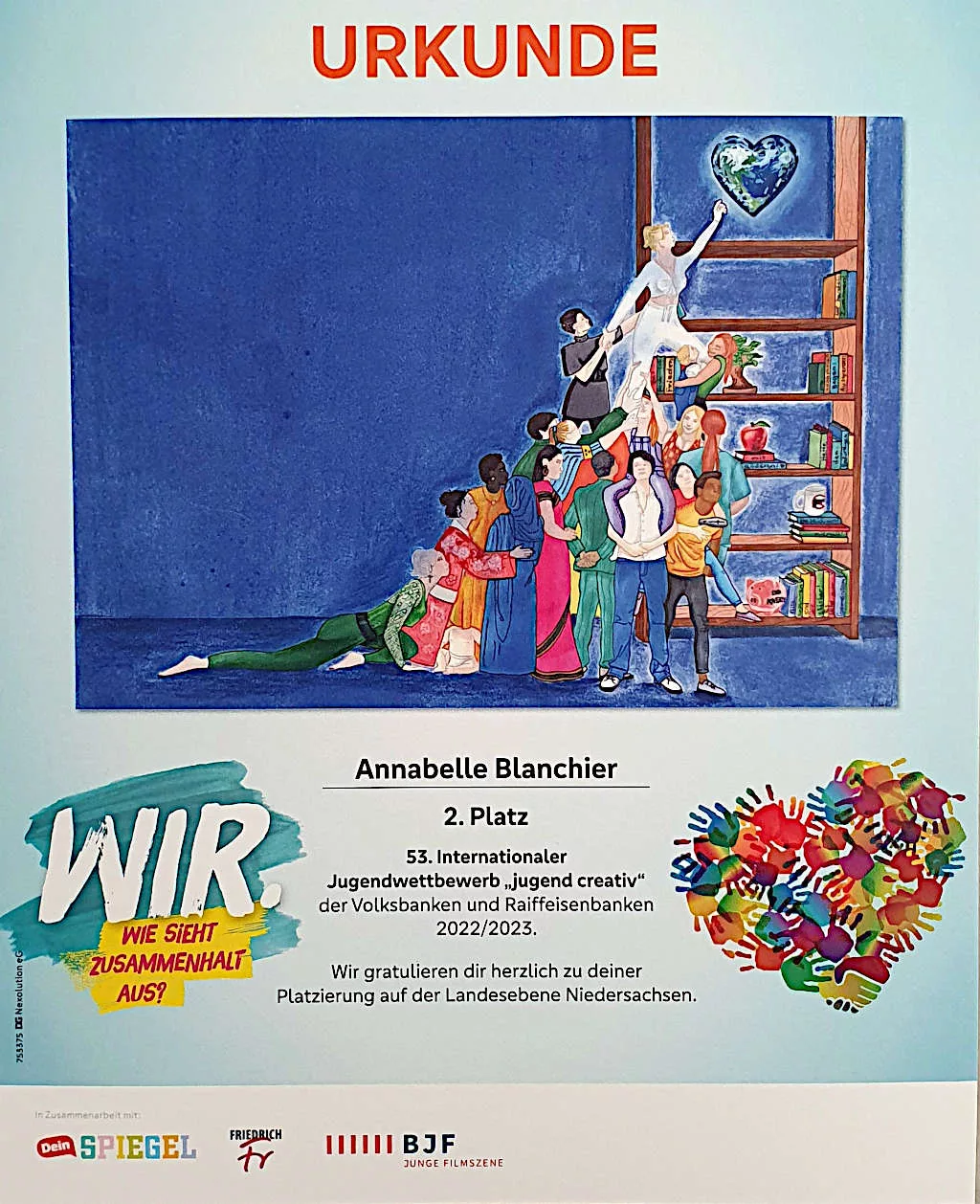 Annabelle Blanchier (Klasse 7a) hat beim Wettbewerb Jugend-Creativ teilgenommen und auf Landesebene den 2. Platz in der Altersgruppe 7. – 9. Klasse gewonnen.