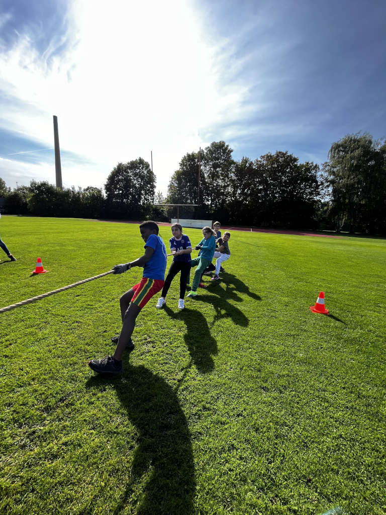 Nun heißt es auch in diesem Schuljahr wieder: Gemeinsam laufen, springen, werfen, stoßen und vor allem Spaß haben. Am kommenden Freitag (23.09.2022) treffen sich alle 5. und 6. Klassen auf dem Sportplatz “Rote Wiese”, um die verschiedensten Disziplinen gemeinsam mit der ganzen Klasse zu meistern. Nicht nur bei dem beliebten Tauziehen kommt es darauf an, gemeinsam “anzupacken” – bei allen Wettkämpfen steht der Teamgeist im Mittelpunkt und so freut sich die Fachgruppe Sport auf einen ereignisreichen und sportlichen Tag.