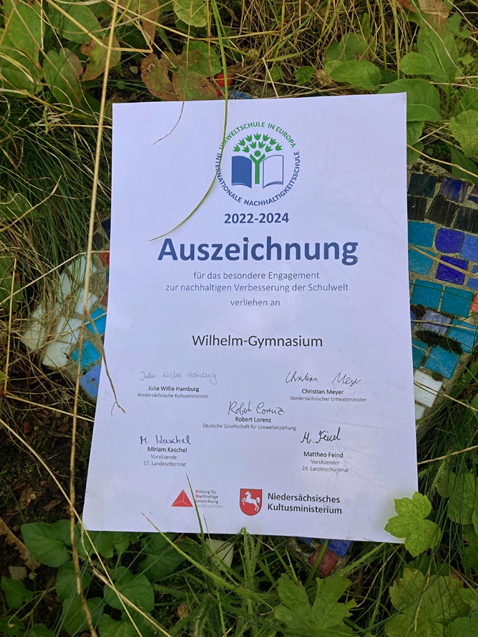 Das Wilhelm-Gymnasium wurde am 10.10. 2024 erneut als Umweltschule in Europa ausgezeichnet.