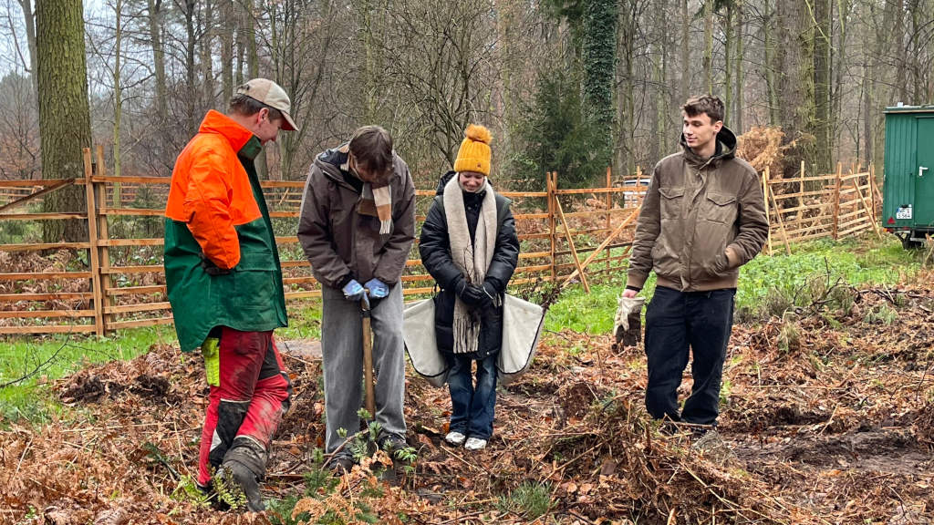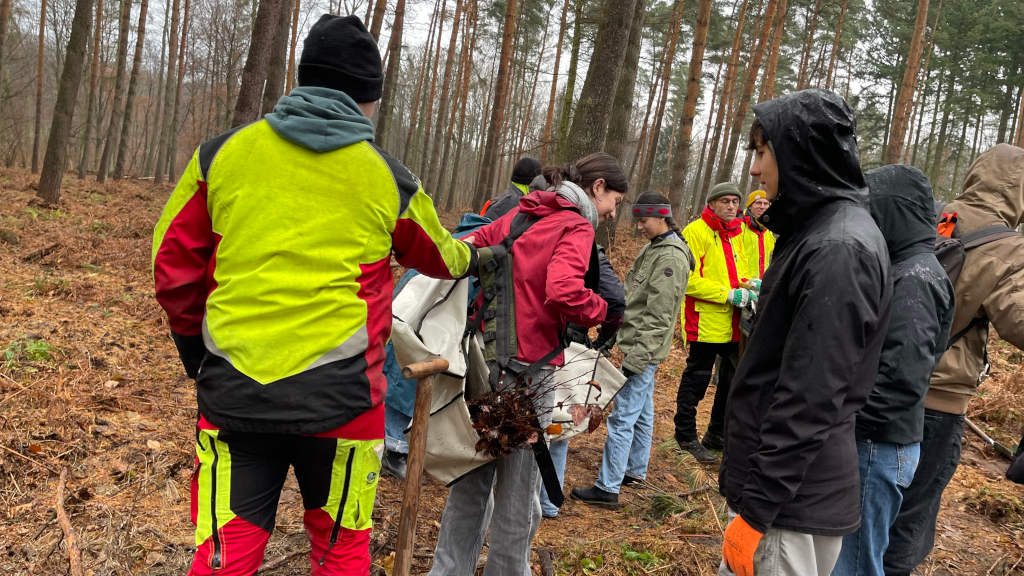 Sehr freundlich und motivierend wurden die Schüler:innen dabei von Herrn Höft (Betriebsdezernent bei den Niedersächsischen Landesforsten) und seinen Mitarbeitenden unterstützt, die mit freundlicher Anleitung sowie Rat und Tat bei den Pflanzungen zur Seite standen. Neben den gespendeten ca. 500 Setzlingen konnten die Schüler:innen weitere knapp 500 Setzlinge in den Boden bringen, die die Landesforsten freundlicherweise zur Verfügung gestellt haben.