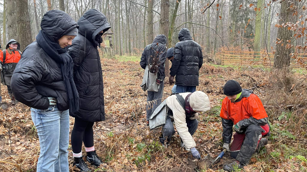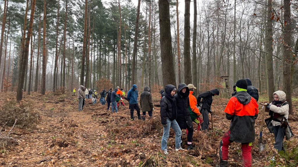 Im Rahmen der Baumpflanzaktion des 13. Jahrgangs trafen sich bei leider regnerischem Wetter kürzlich 30 wetterfest gekleidete Schüler:innen des Jahrgangs in einem Wäldchen nördlich von Meerdorf (LK Peine), um die im Rahmen der Aktion gespendeten Setzlinge noch kurz vor Beginn des Winters mithilfe von Muskelkraft und Pflanzspaten in den Boden einzubringen.