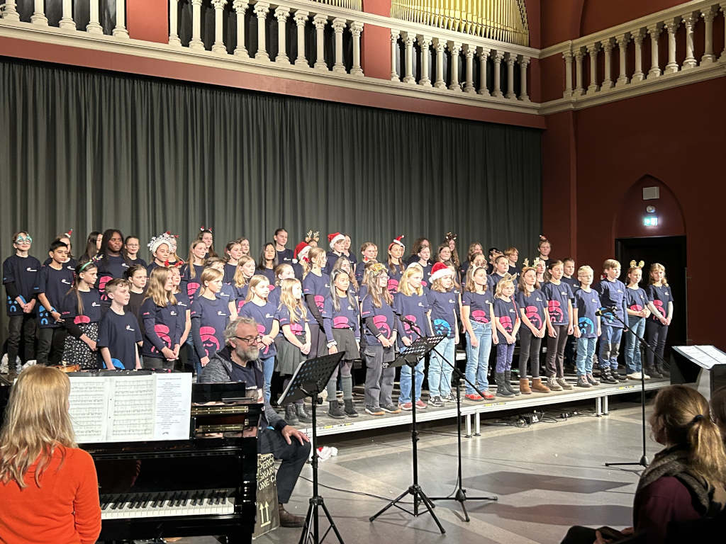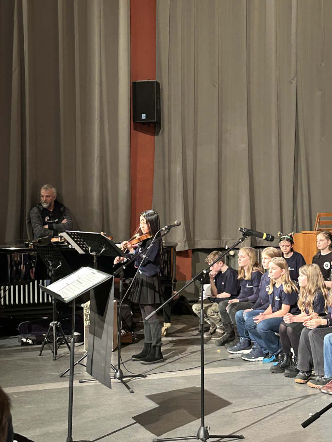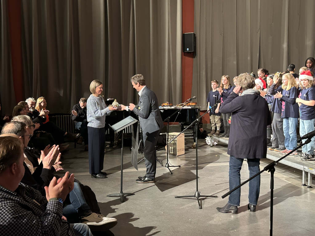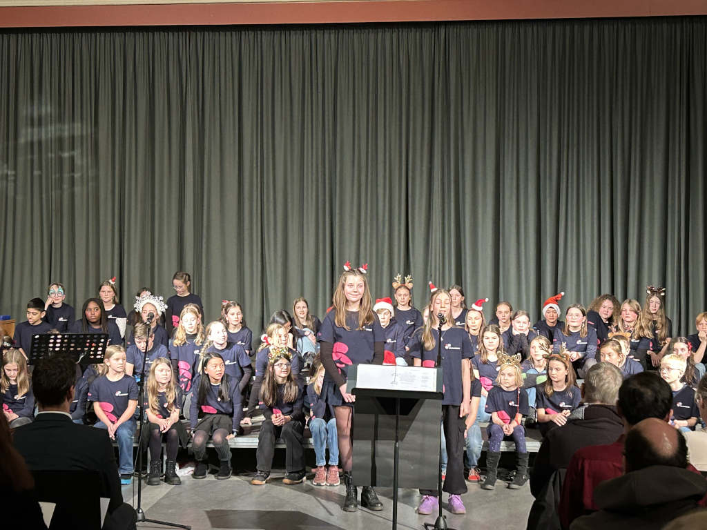 Die Gesangsbeiträge wurden durch Musikstücke und Gedichtvorträge toll ergänzt, so dass für jeden etwas dabei war. Für das leibliche Wohl vor und nach dem Konzert hat der Abiturjahrgang ’25 gesorgt, der auf dem Schulhof einen Weihnachtsmarkt organisiert hat.