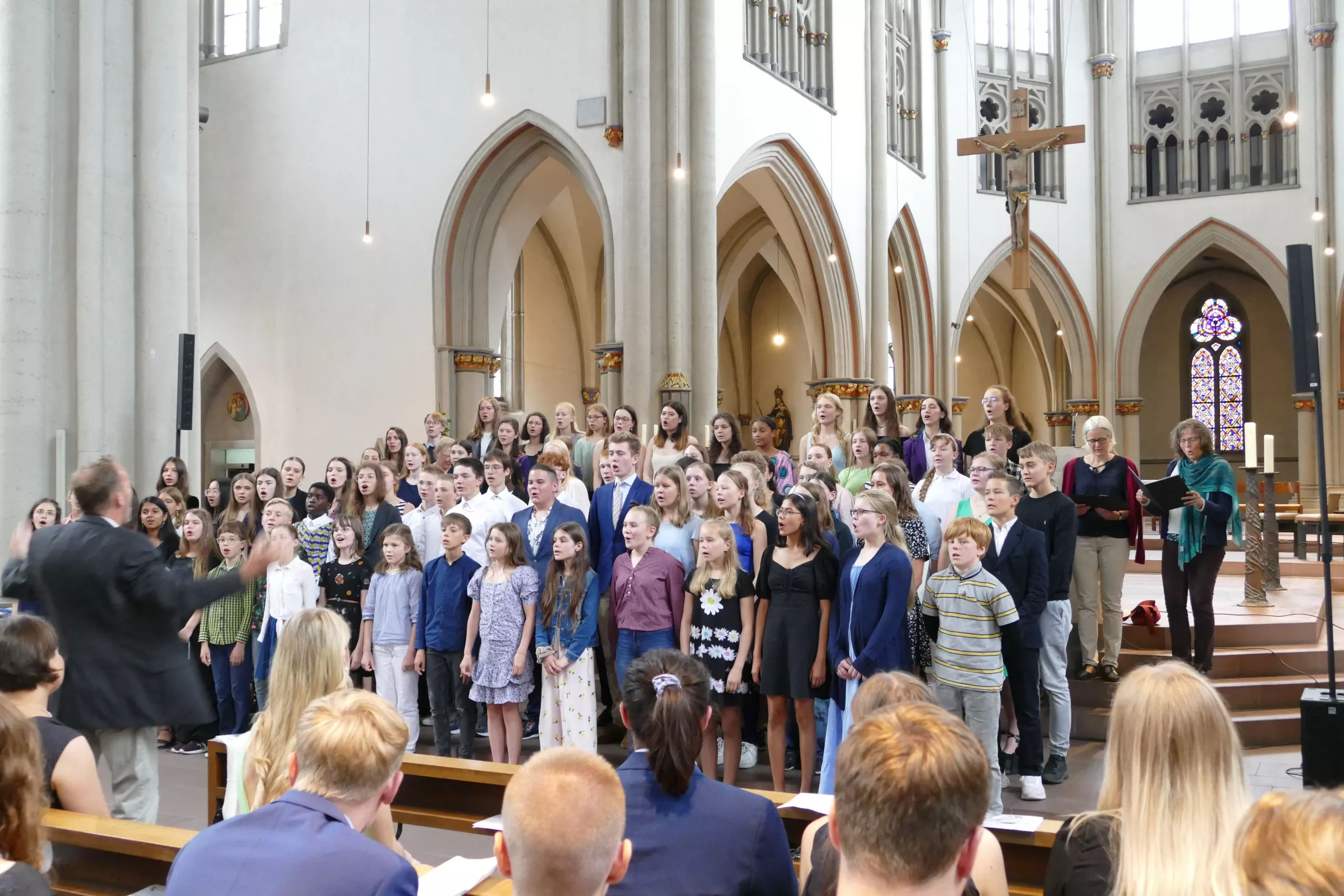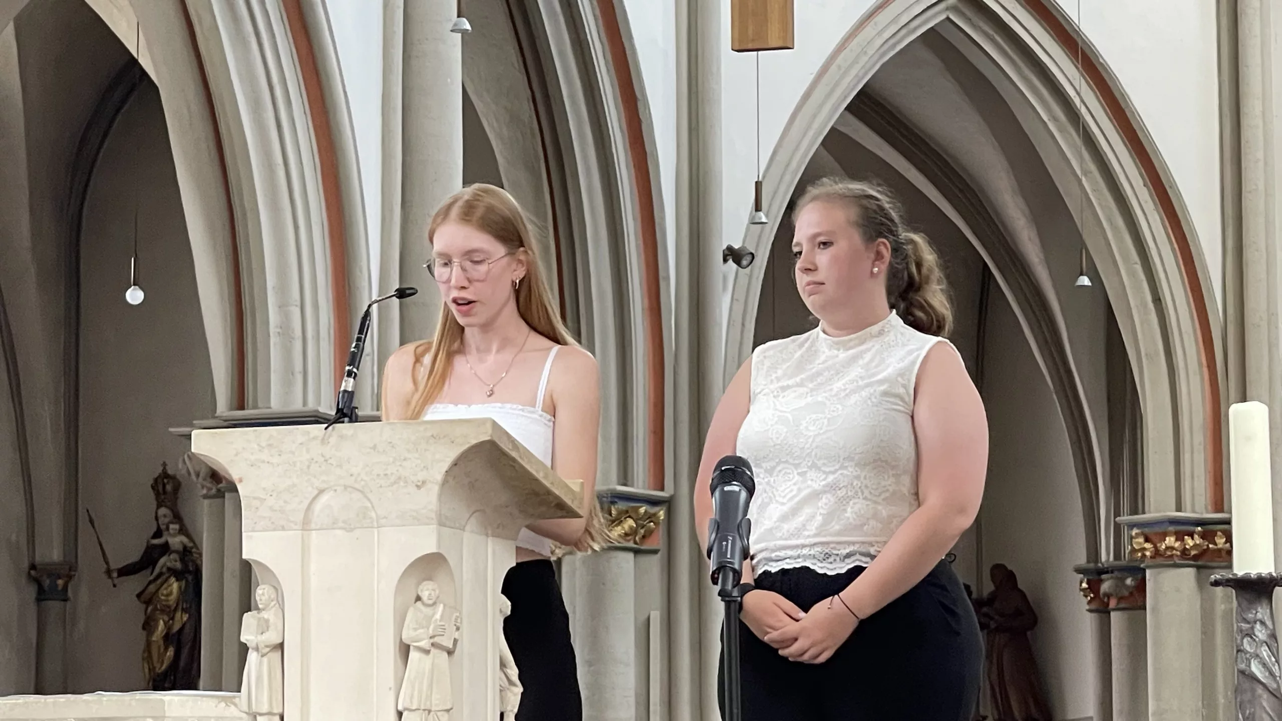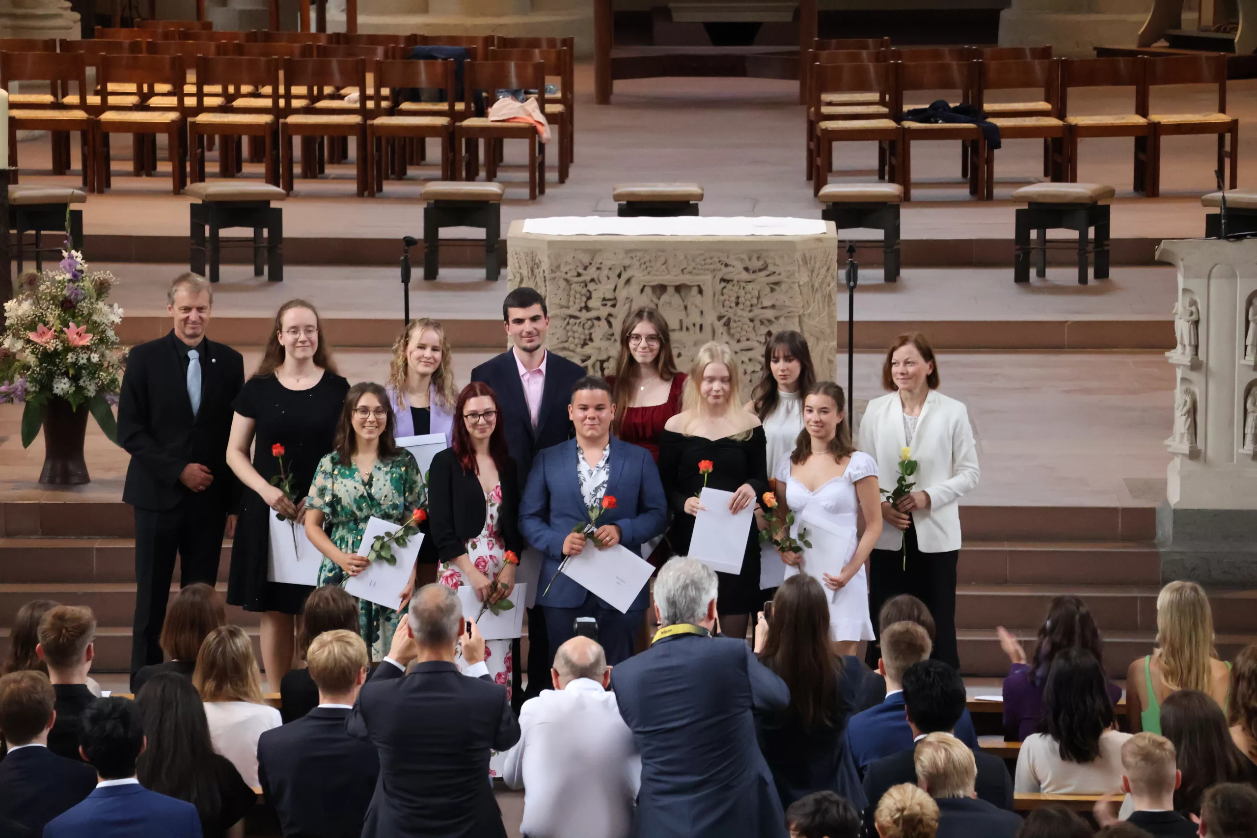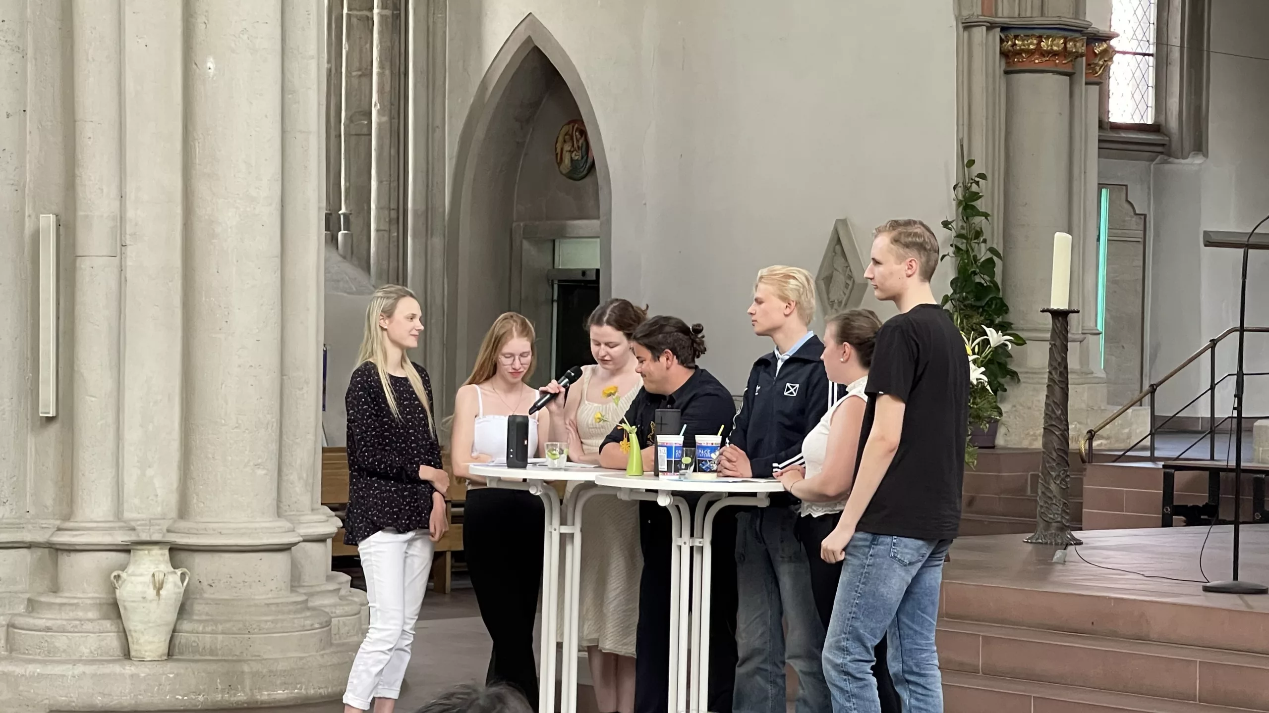 Kim, Frieda und Marie mit Frau Dahlheim und Frau Lorenz