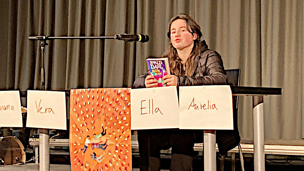 Es wurde wieder aus recht unterschiedlichen Büchern vorgelesen und die Jury, bestehend aus Frau Gruffke und Frau Schneider-Diehl aus der Elternvertretung, Milla Hilbig und Vincent Fricke aus dem 13. Jahrgang sowie Hagen Schmidt und Sophia Letsche, den Vorjahressiegern, hatte es mit der Entscheidung nicht leicht. Alle waren gut vorbereitet und haben toll gelesen. Geschafft haben es dann Aurelia auf den ersten und Ella auf den zweiten Platz. Herzlichen Glückwunsch!