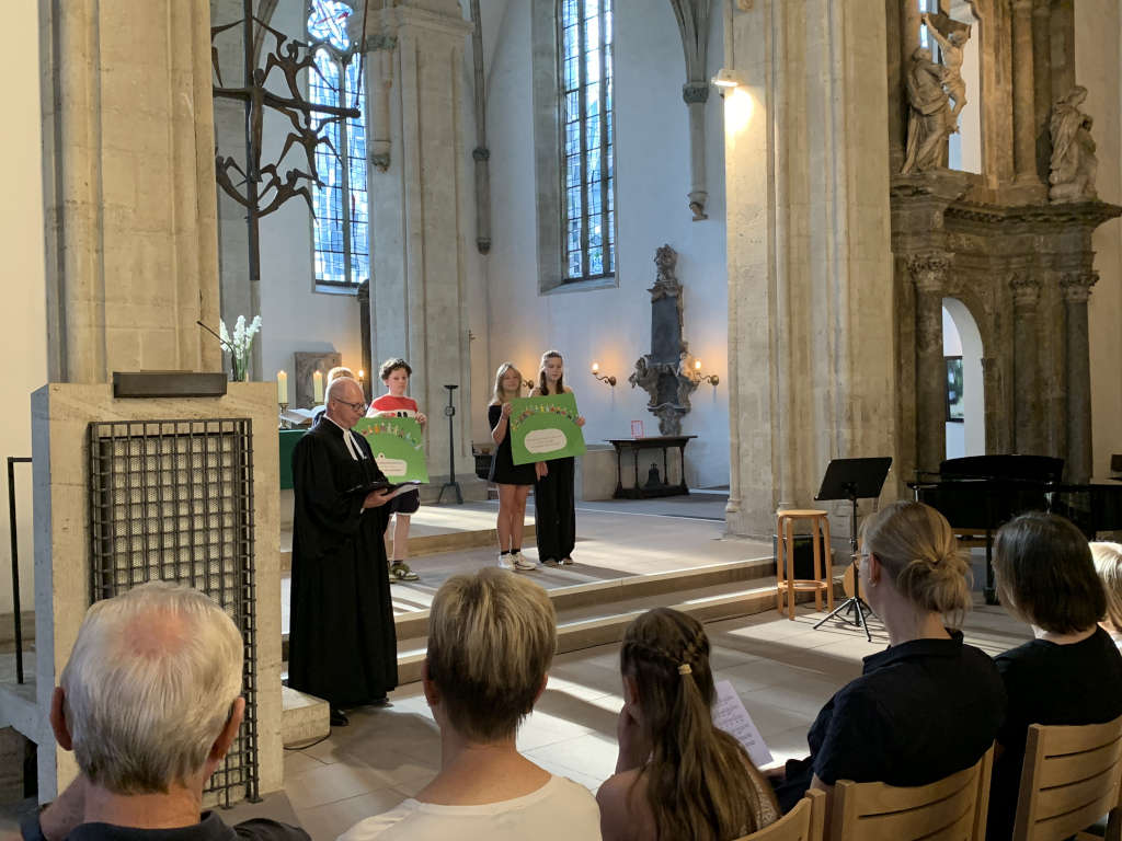 Am letzten Schultag, kurz vor der Zeugnisausgabe, kamen alle Schülerinnen und Schüler der Jahrgänge 5 und 6 noch einmal in der Aula zusammen.