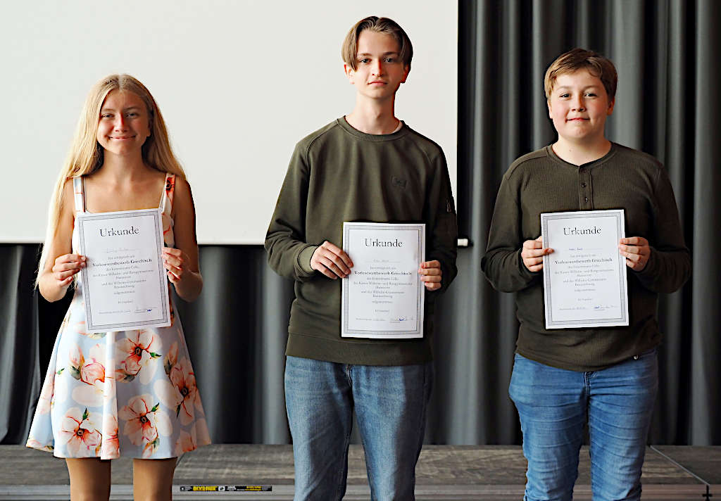 Auch dieses Jahr waren WG-SchülerInnen wieder erfolgreich beim beliebten Wettbewerb „Chemie – die stimmt“. Fiona Fiedrich (11c), Marielle Elfers (11a) und Carl-Gustav Wolters (10m2) haben erfolgreich an der Regionalrunde teilgenommen. Fiona Fiedrich hat sogar den Regionalsieg errungen und sich damit für die Bundesrunde vom 20. bis 24. September 2022 in Leipzig qualifiziert. Wir drücken ihr die Daumen!